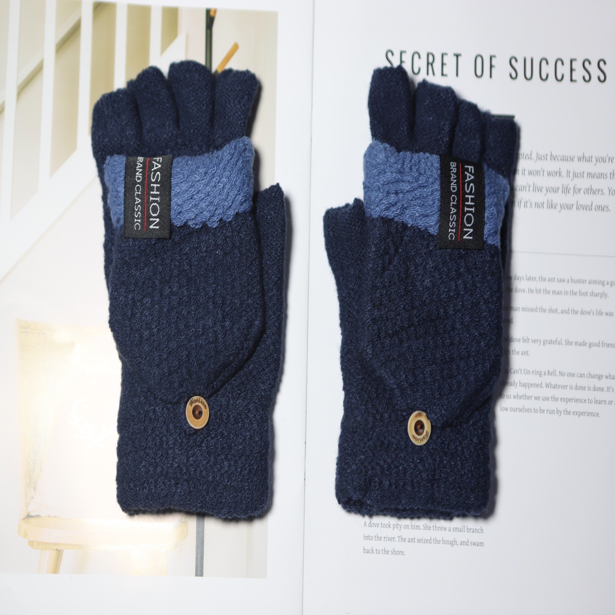 겨울 새로운 니트 장갑 남성용 야외 방풍 터치 스크린 플립 커버 이중 목적 봉제 따뜻한 하프 핑거 장갑 한국 스타일 트렌디스토어 가기