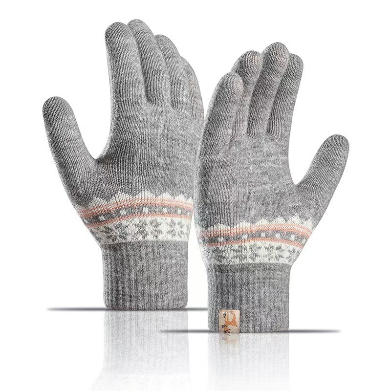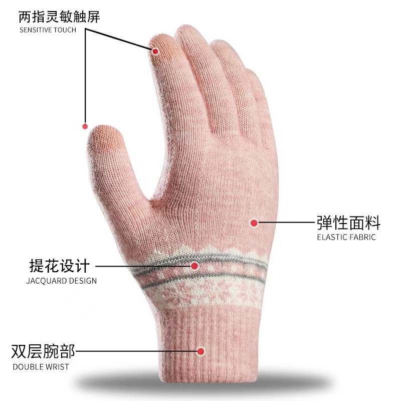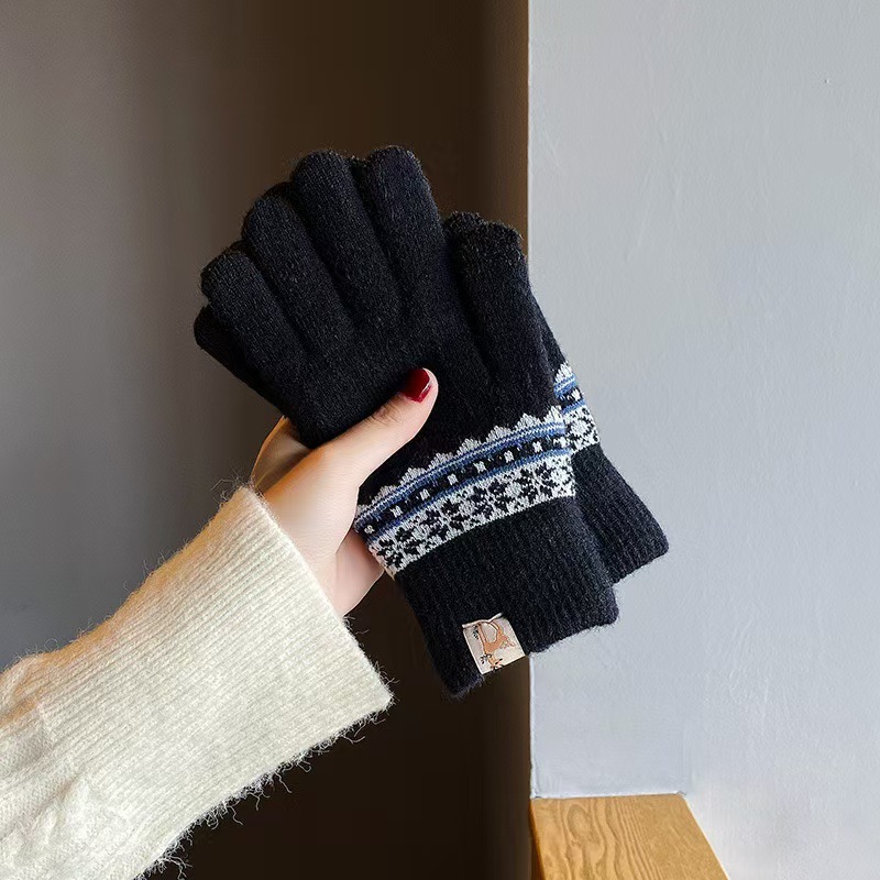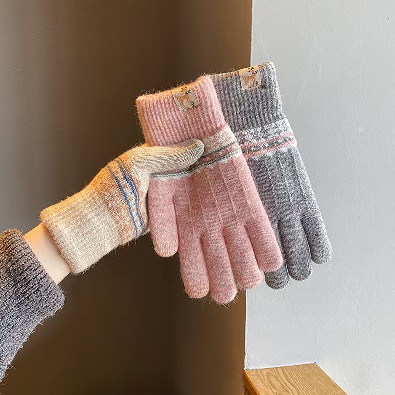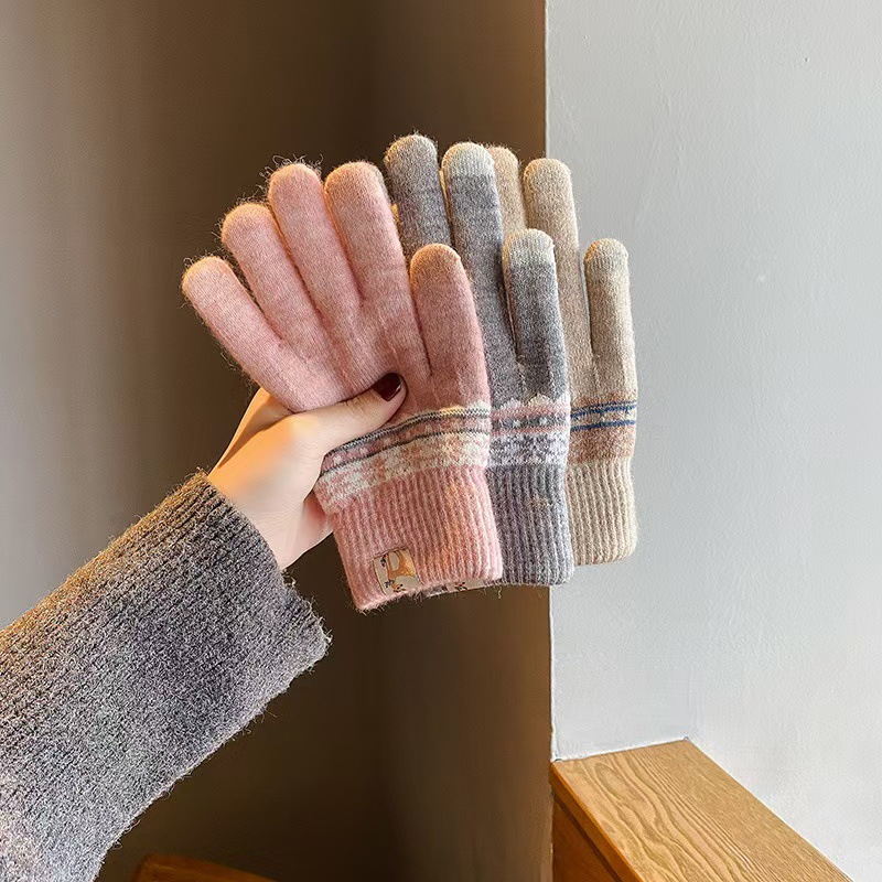국경 간 직접 니트 장갑 여성용 따뜻한 더블 레이어 기모 학생 사이클링을위한 두꺼운 울 자카드 터치 스크린 장갑