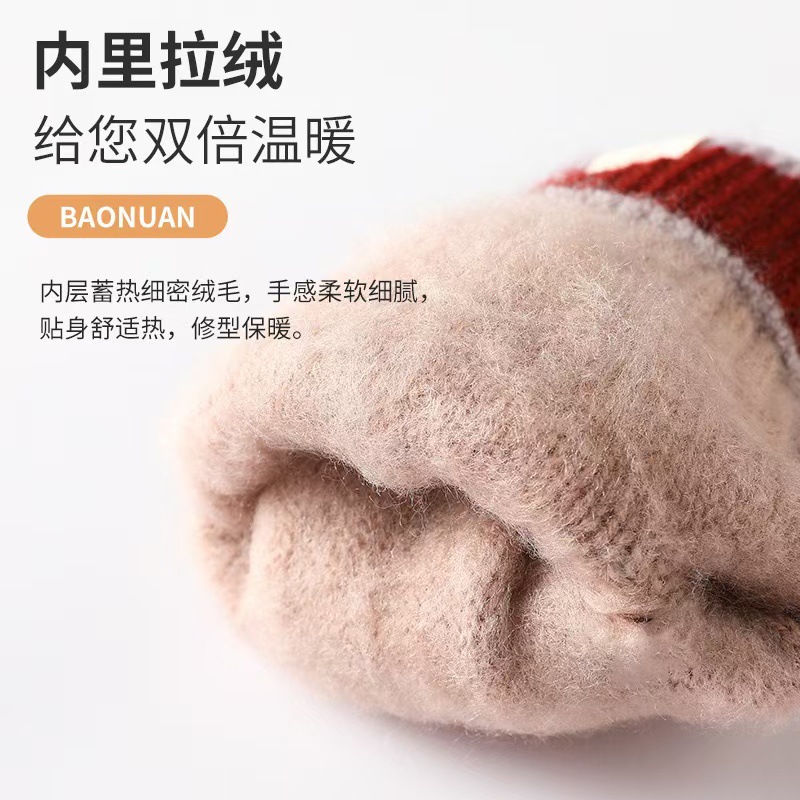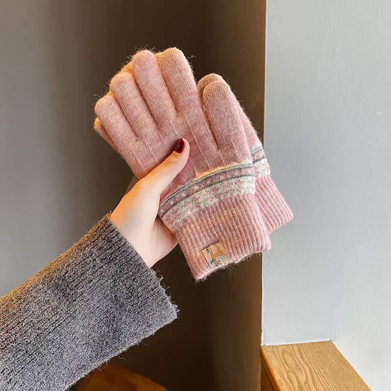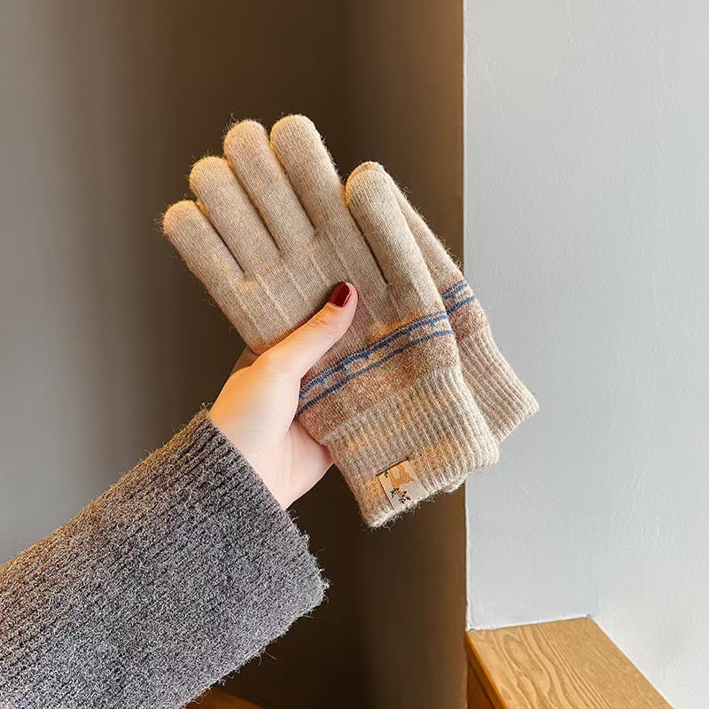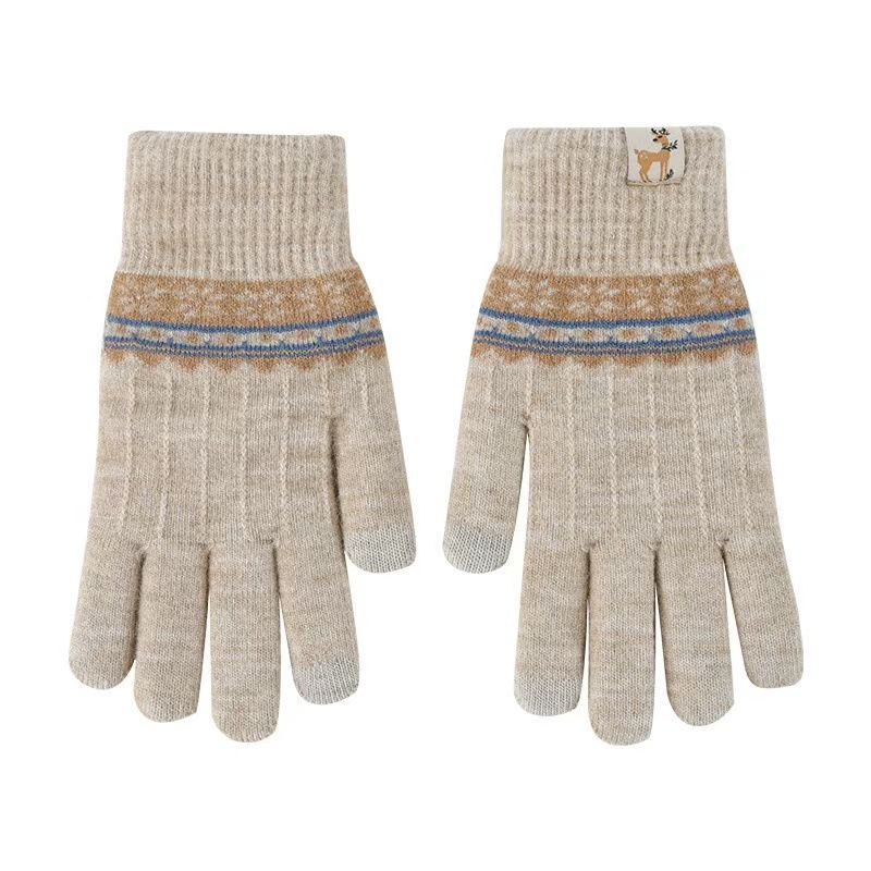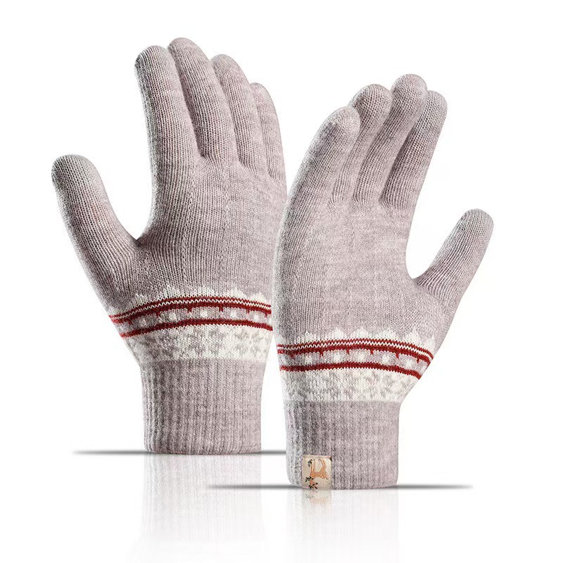 국경 간 직접 니트 장갑 여성용 따뜻한 더블 레이어 기모 학생 사이클링을위한 두꺼운 울 자카드 터치 스크린 장갑