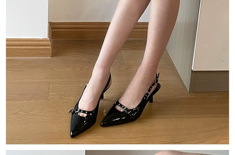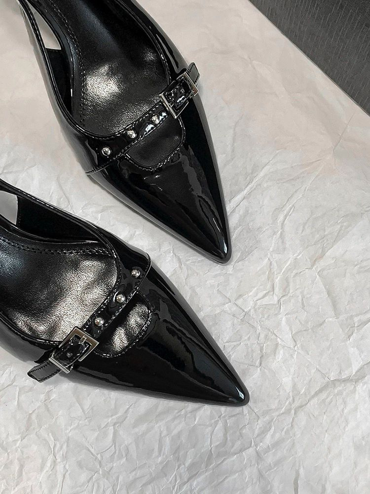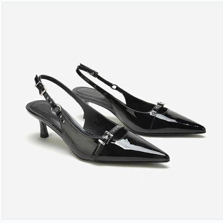 영국 스타일 Baotou 샌들 여성 여름 뉴 블랙 포인팅 키튼 힐 빈 신발 미드 힐 기질 하이힐