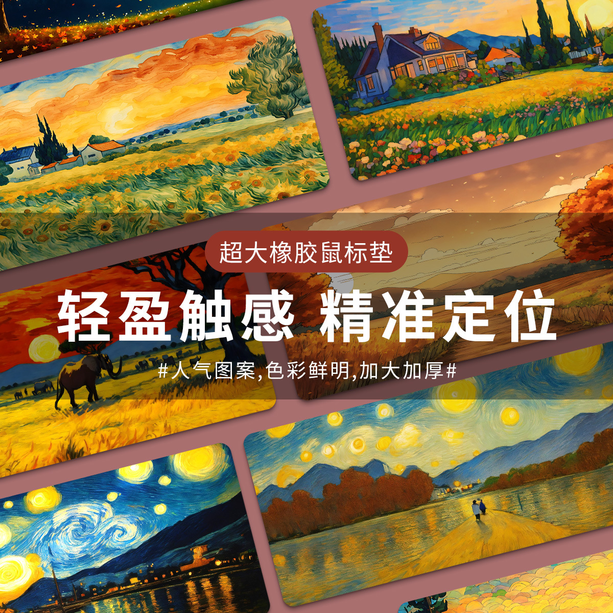 대형 유화 풍경 그림 풍경 마우스 패드 창조적 인 만화 복고풍 예술 잠금 가장자리 두꺼운 테이블 매트