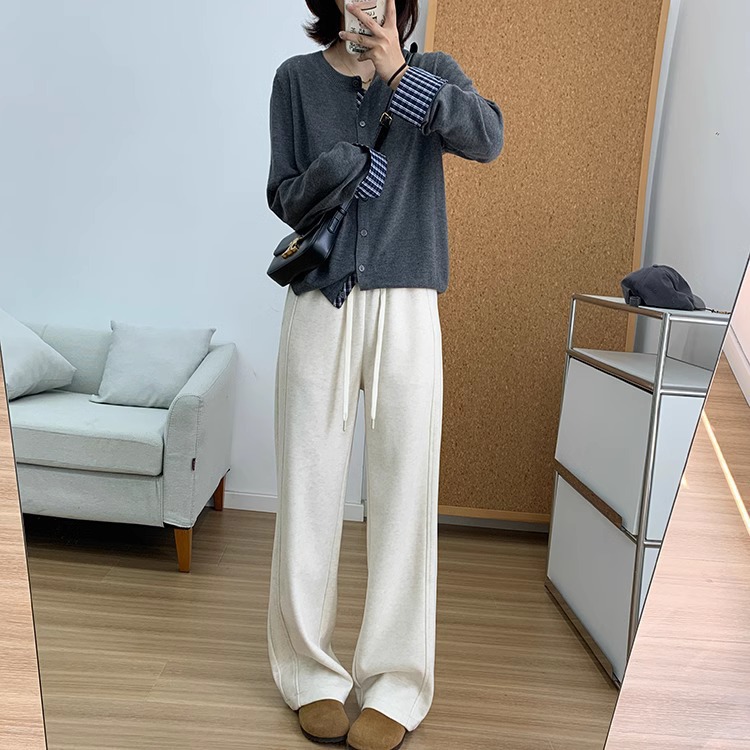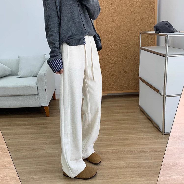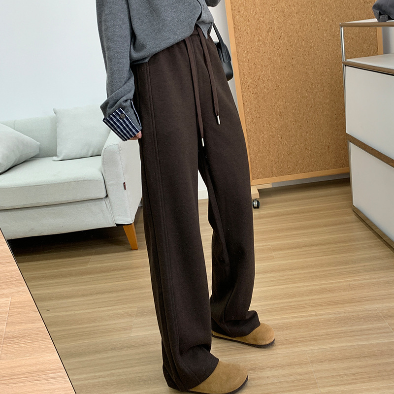 두꺼운 모직 바지 양모 넓은 다리 바지 여성용 가을과 겨울 새로운 높은 허리 슬리밍 캐주얼 바지 좁은 스타일 스트레이트 바지