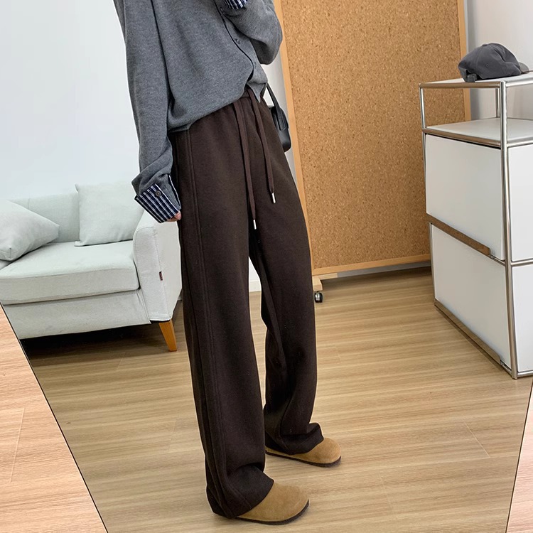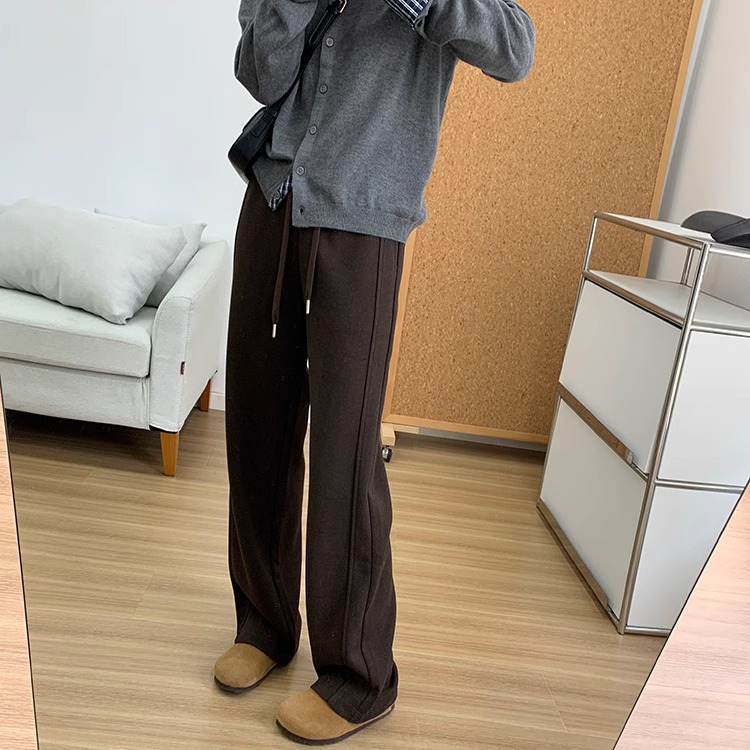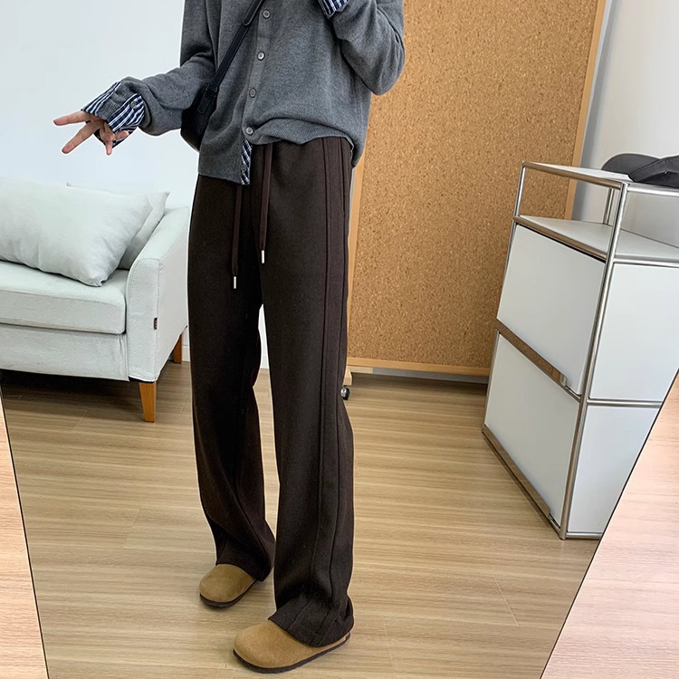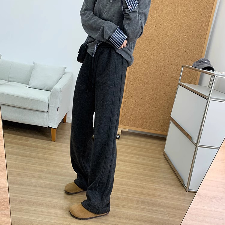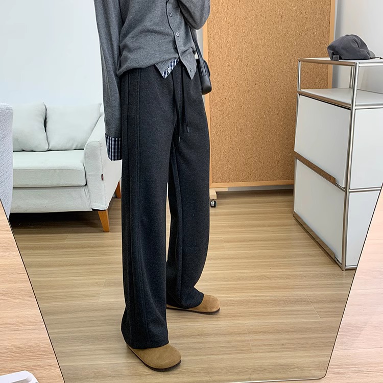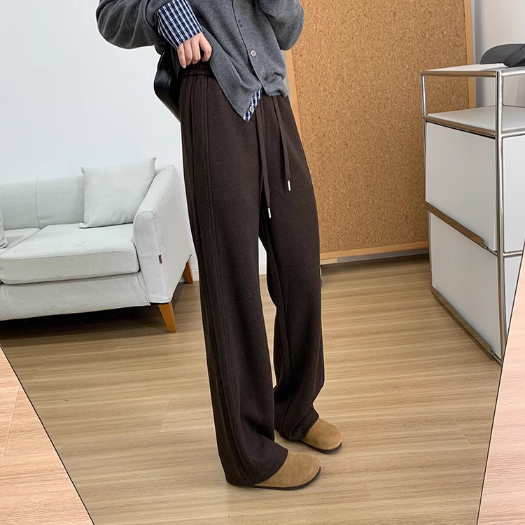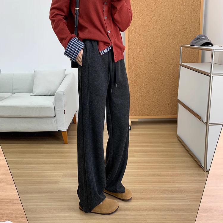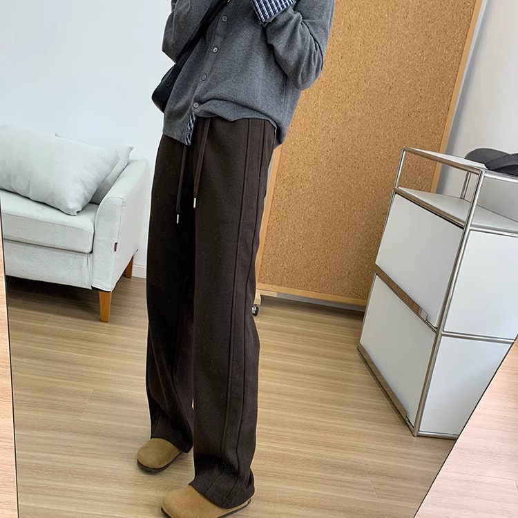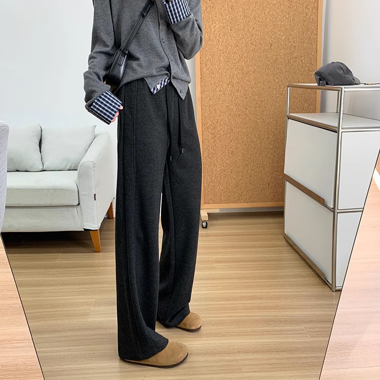 두꺼운 모직 바지 양모 넓은 다리 바지 여성용 가을과 겨울 새로운 높은 허리 슬리밍 캐주얼 바지 좁은 스타일 스트레이트 바지스토어 가기