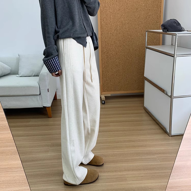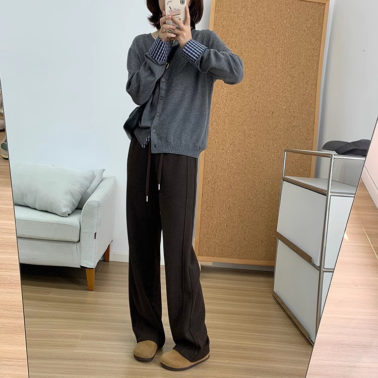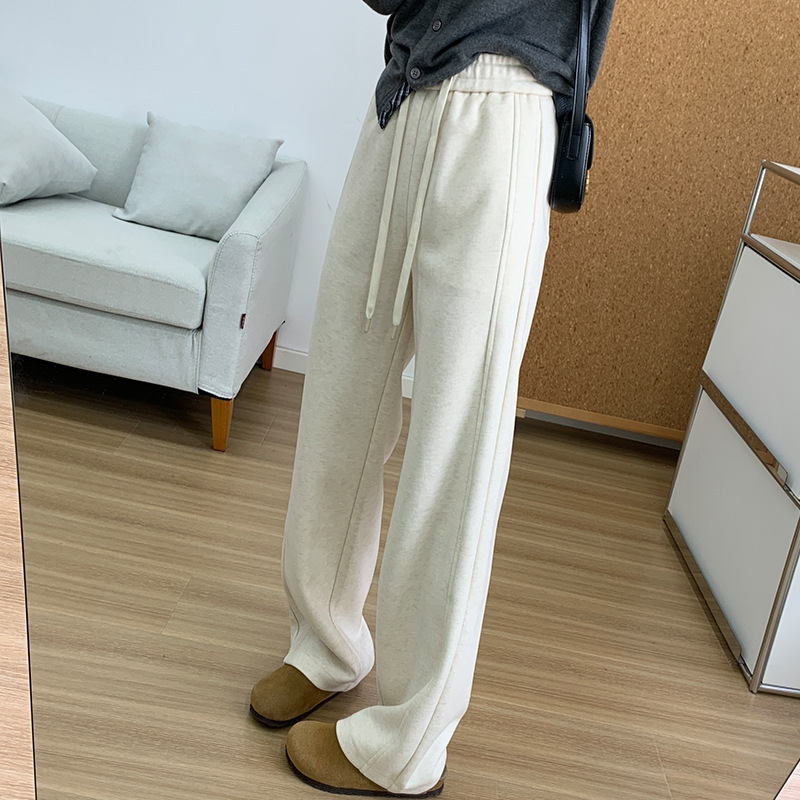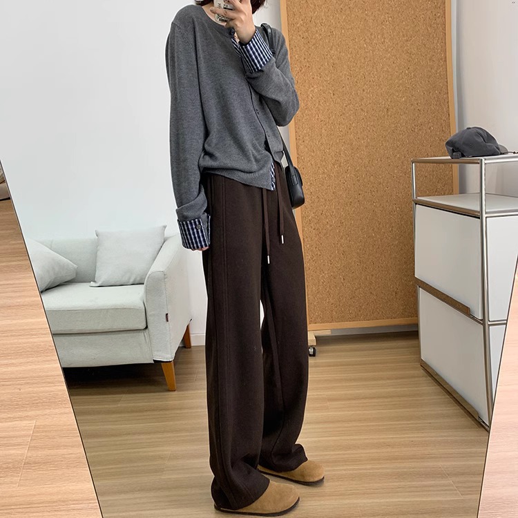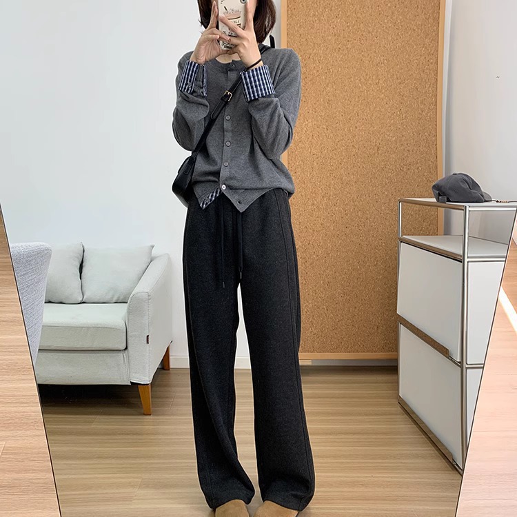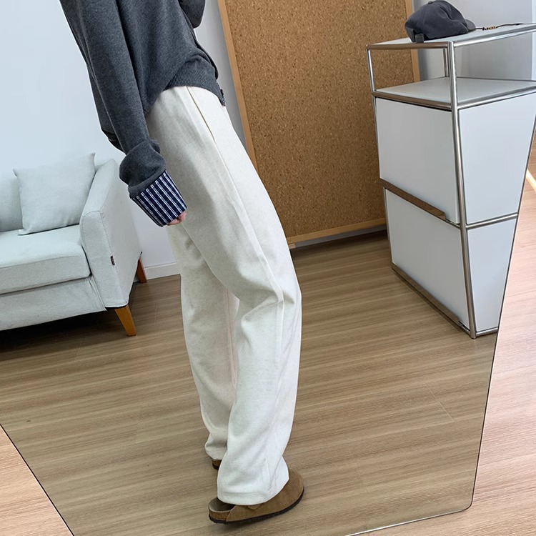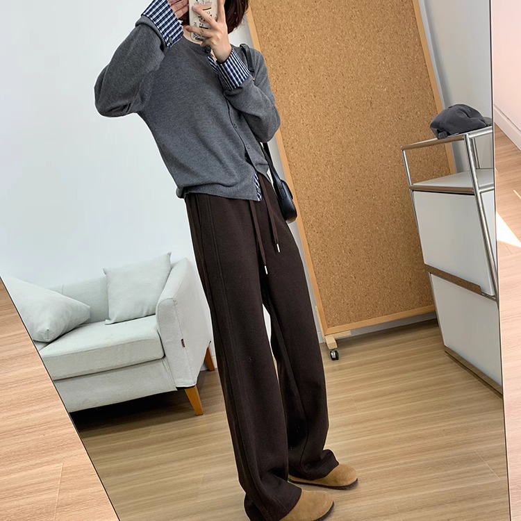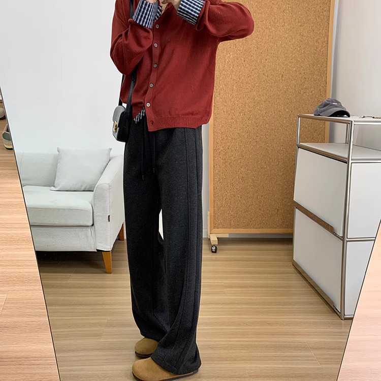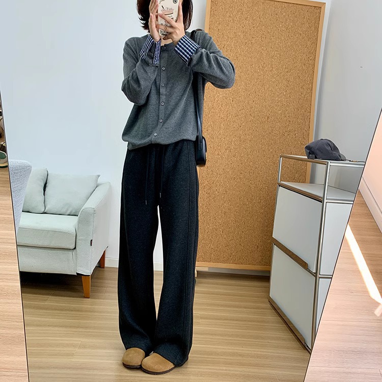 두꺼운 모직 바지 양모 넓은 다리 바지 여성용 가을과 겨울 새로운 높은 허리 슬리밍 캐주얼 바지 좁은 스타일 스트레이트 바지스토어 가기