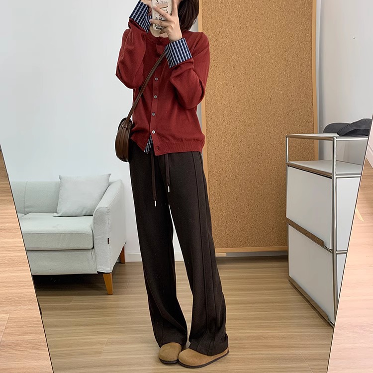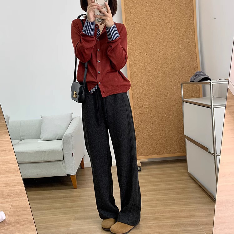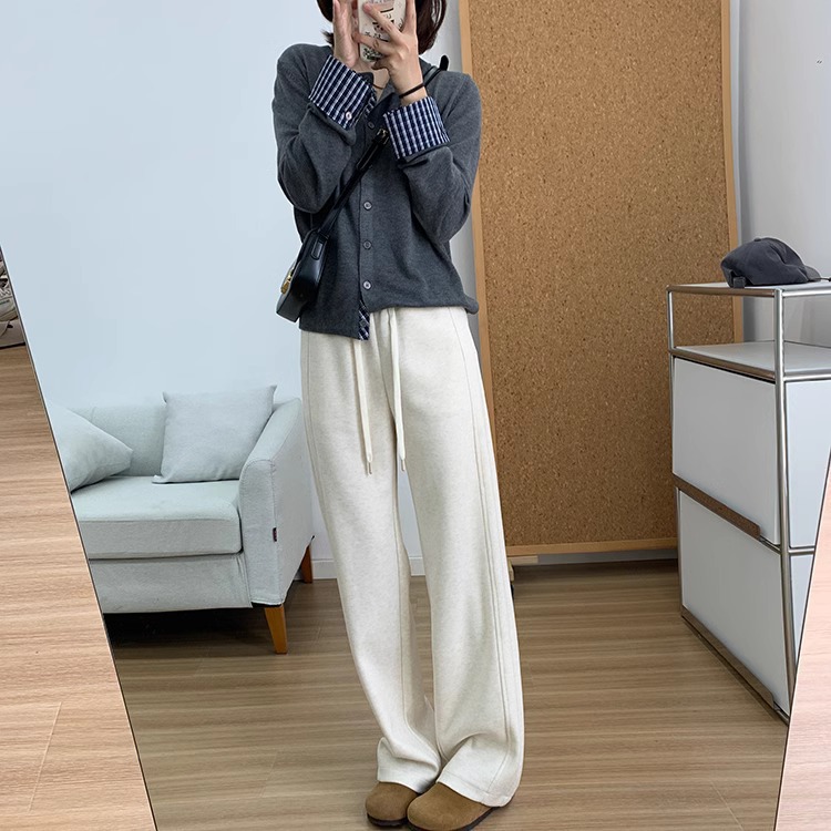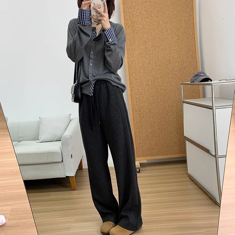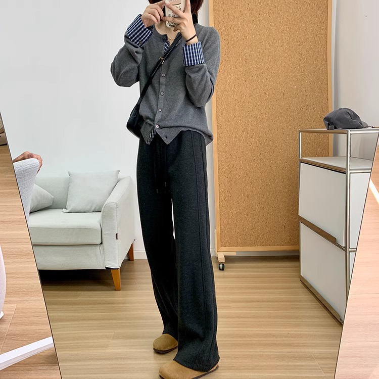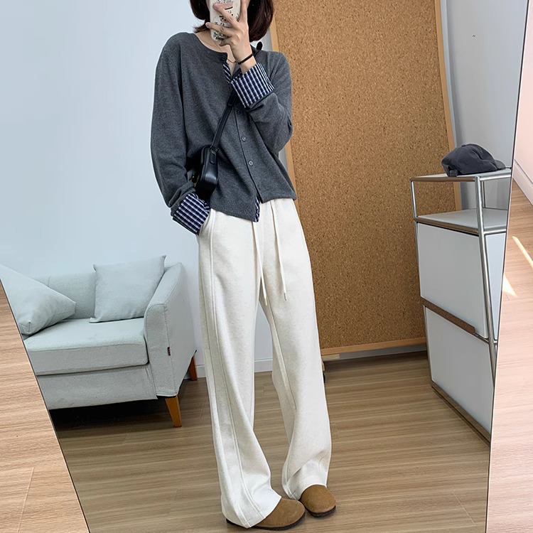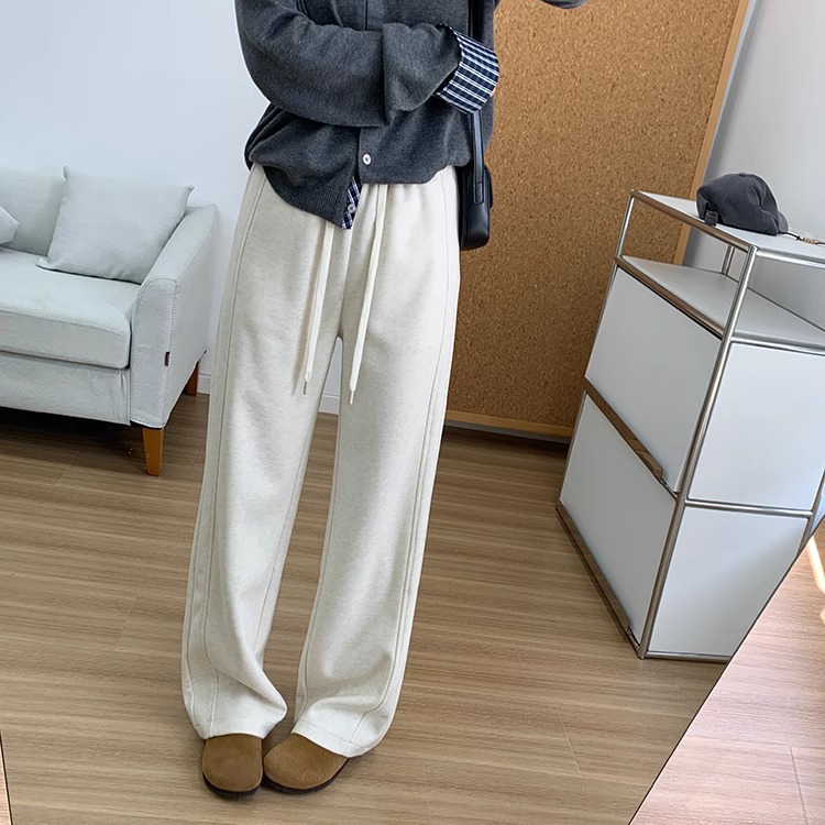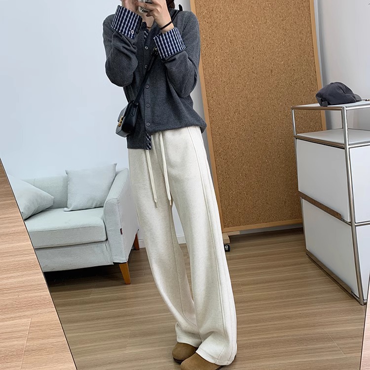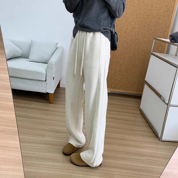 두꺼운 모직 바지 양모 넓은 다리 바지 여성용 가을과 겨울 새로운 높은 허리 슬리밍 캐주얼 바지 좁은 스타일 스트레이트 바지스토어 가기
