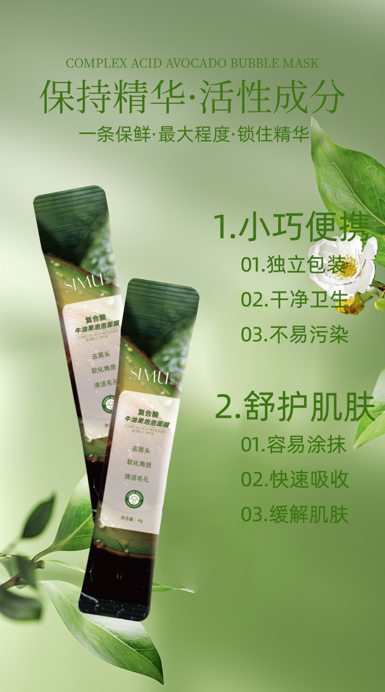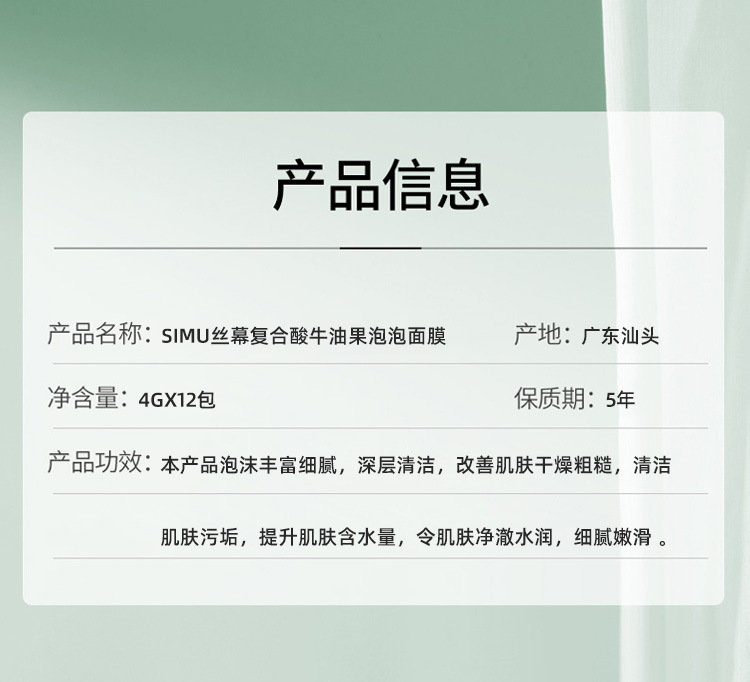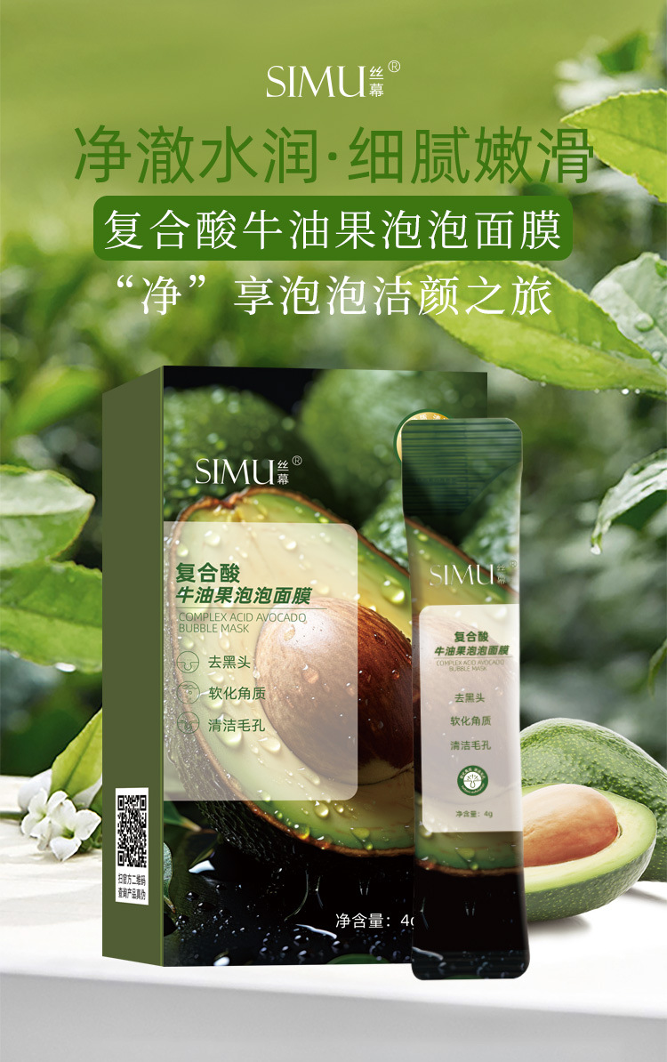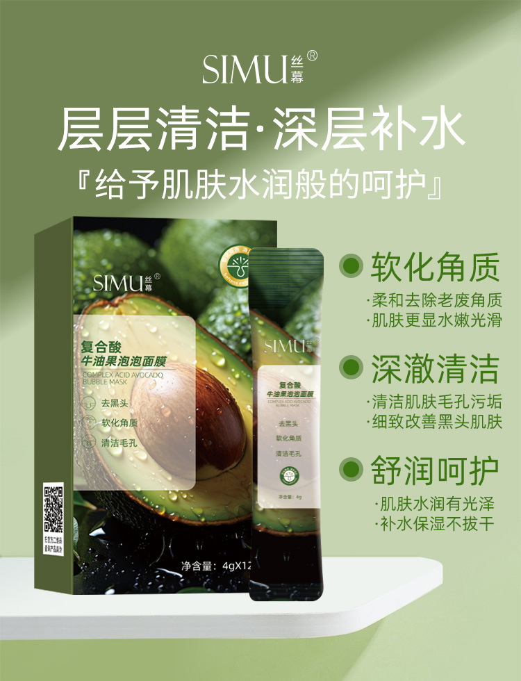 【产品名称】SIMU丝幕复合酸牛油果泡泡面膜