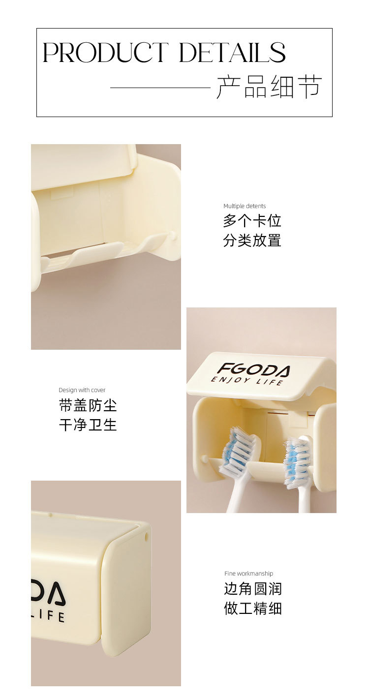• 商品名称:奶油黄简约壁挂带盖防尘牙刷收纳架--大号 六牙刷位
