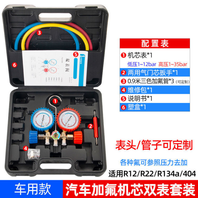 액체 추가 더블 게이지 에어컨 압력 게이지 가정용 에어컨 자동차 에어컨-불소 추가 미터 불소-추가 세트/냉매 미터스토어 가기