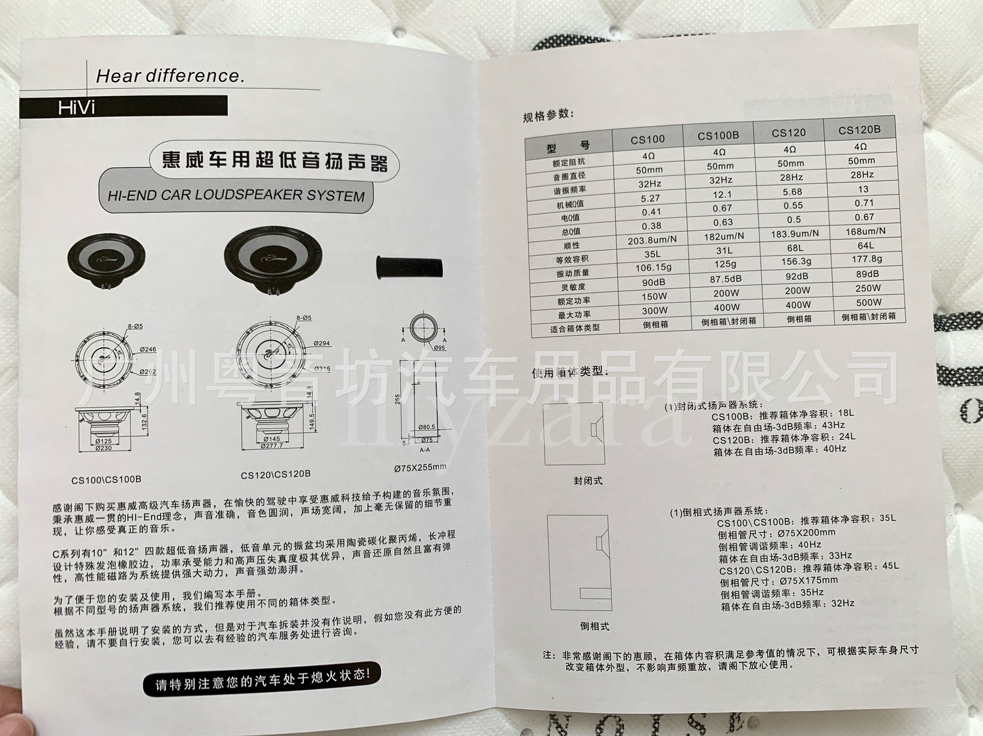 하이비 자동차 오디오 CS100B 수동 서브 우퍼 서브 우퍼 10 인치 자동차 서브 우퍼스토어 가기