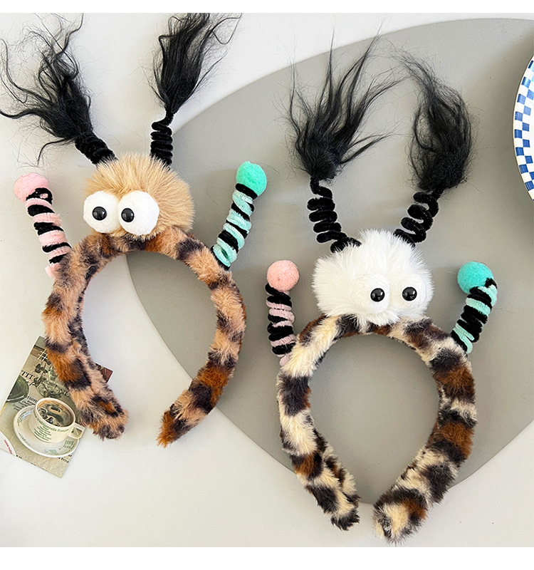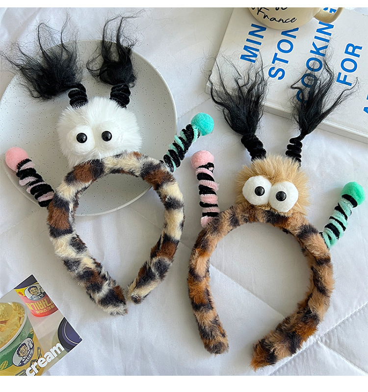추악한 귀여운 큰 눈 꼰 봉제 헤어 밴드 여성 재미있는 만화 머리핀 레오파드 무늬 머리띠 머리 장식 헤어 액세서리스토어 가기