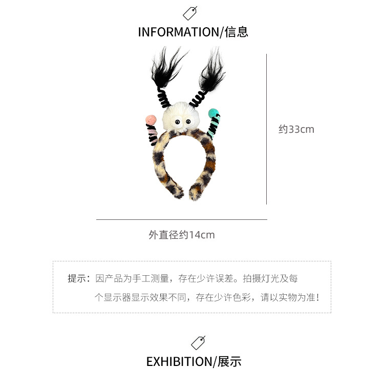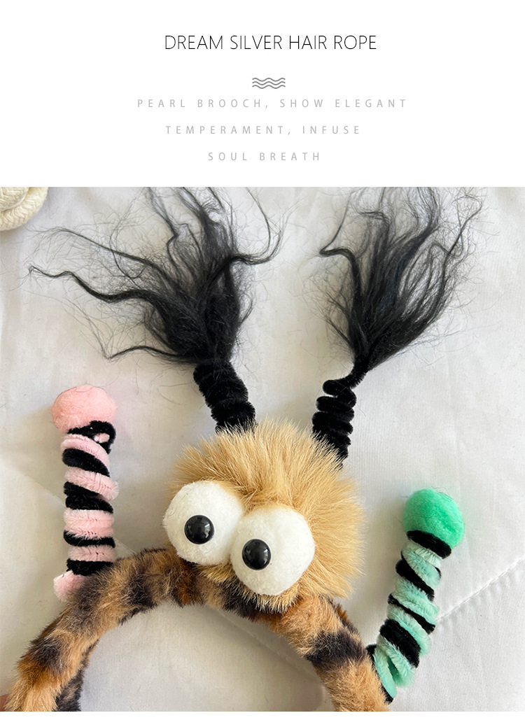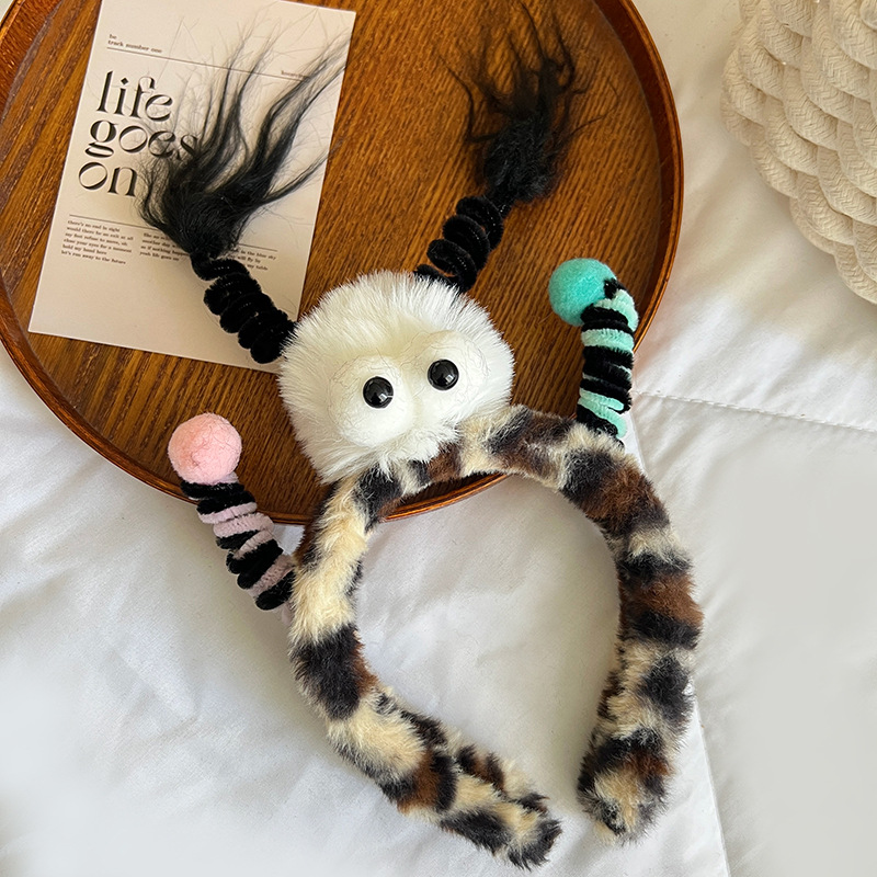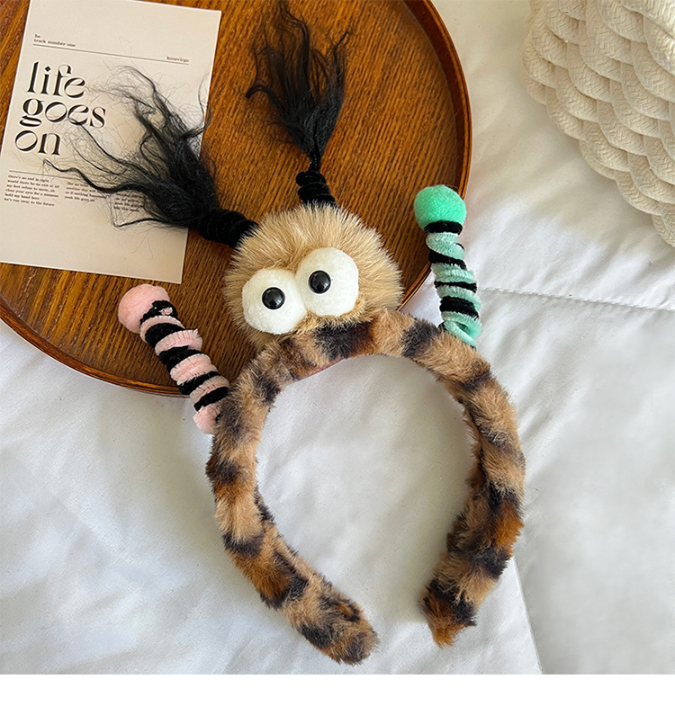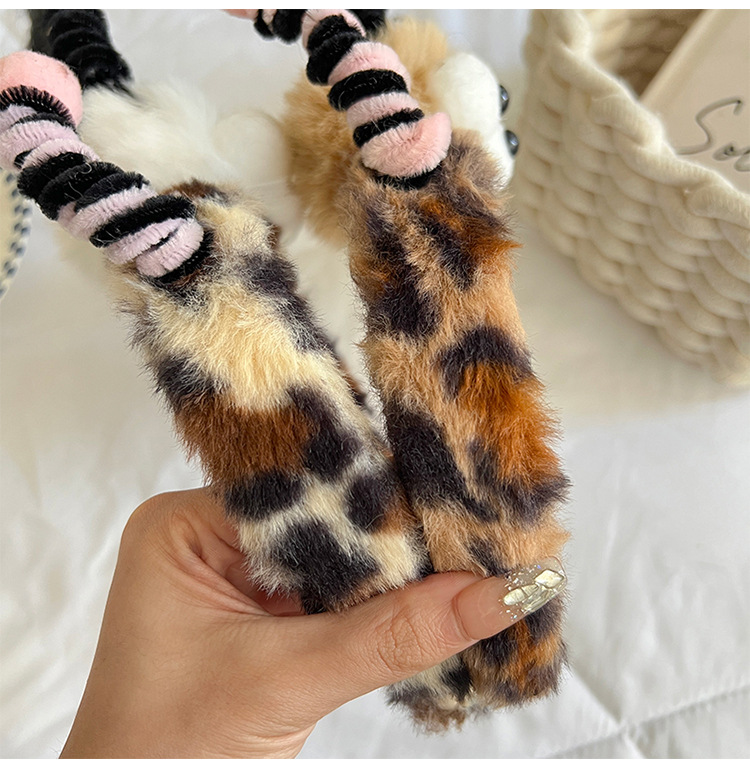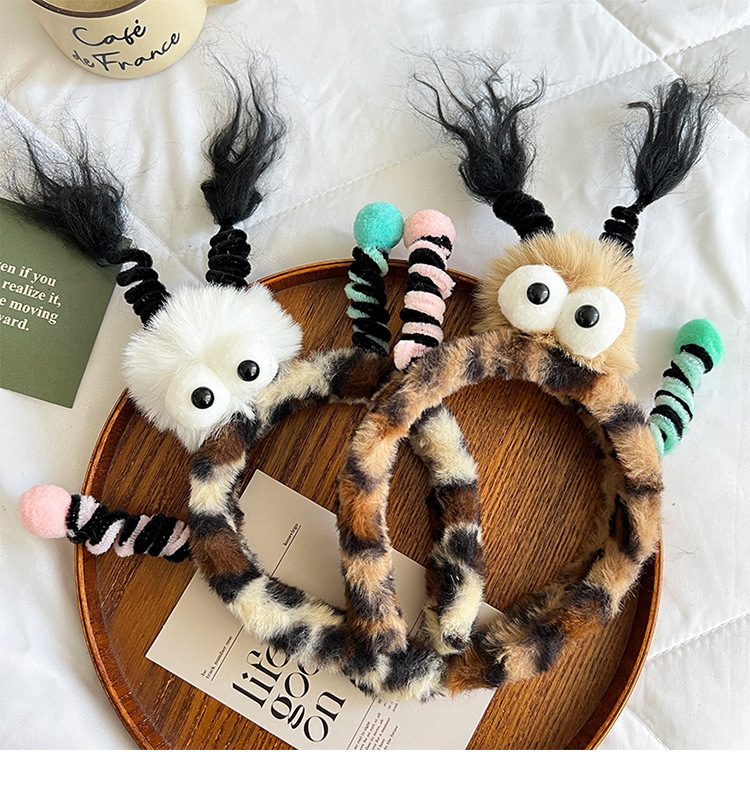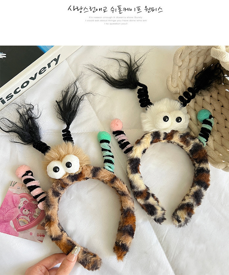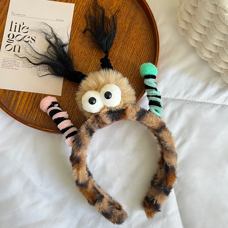 추악한 귀여운 큰 눈 꼰 봉제 헤어 밴드 여성 재미있는 만화 머리핀 레오파드 무늬 머리띠 머리 장식 헤어 액세서리