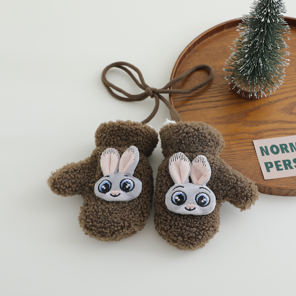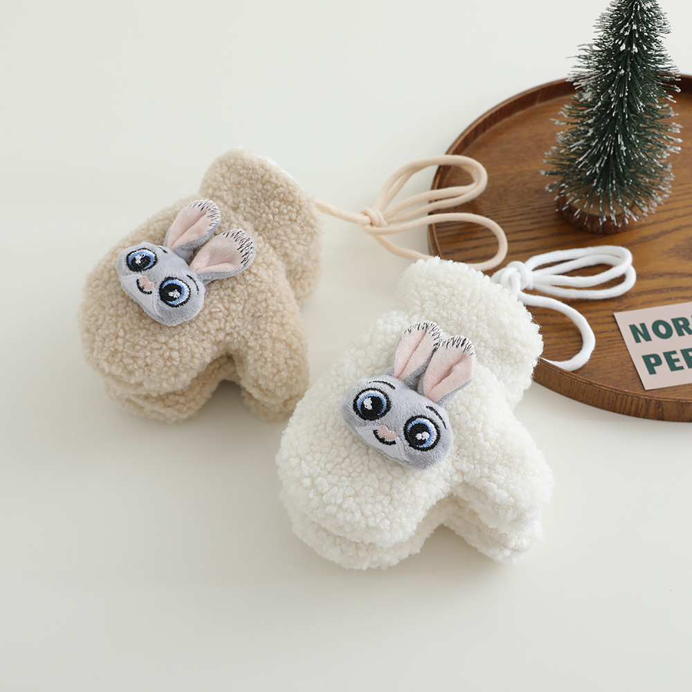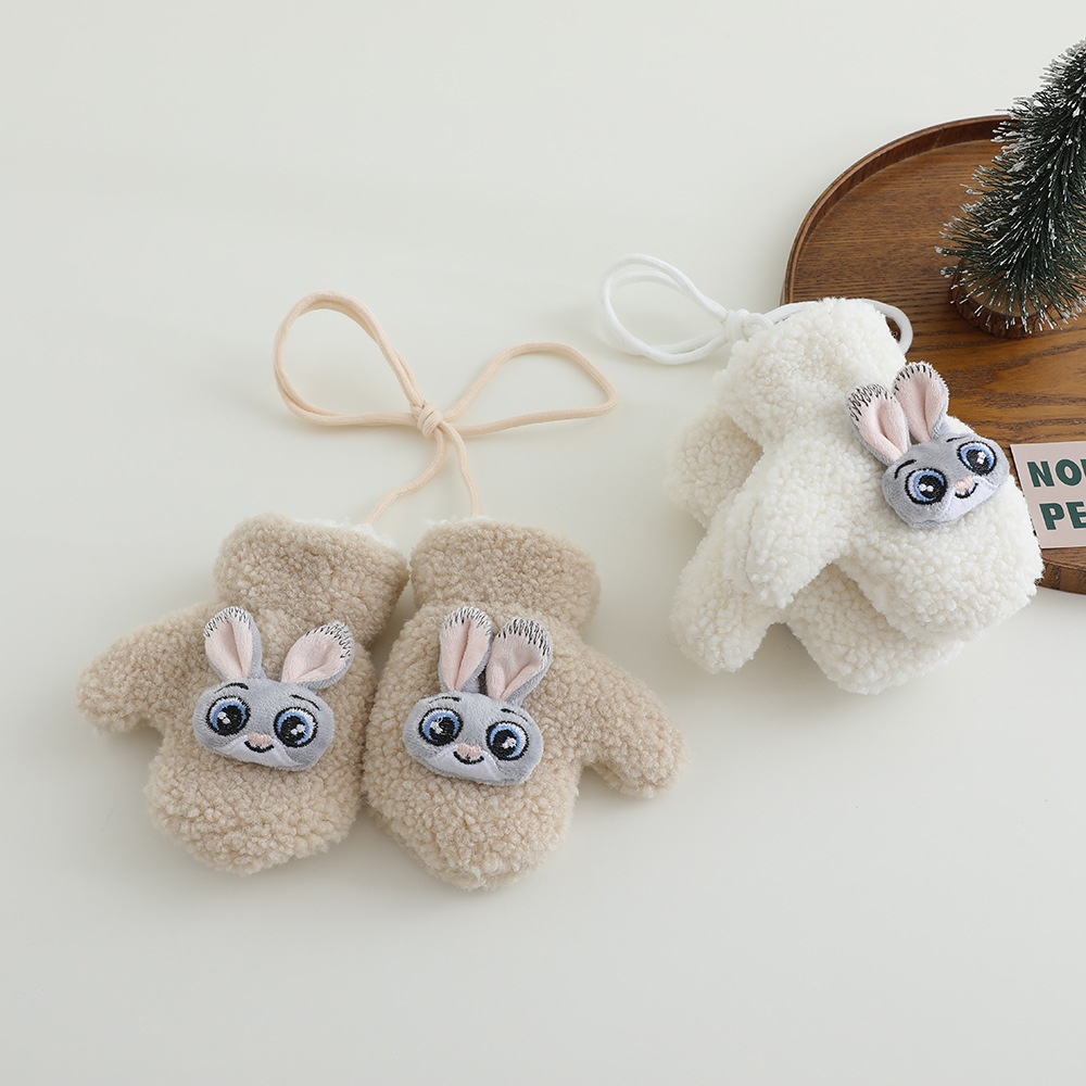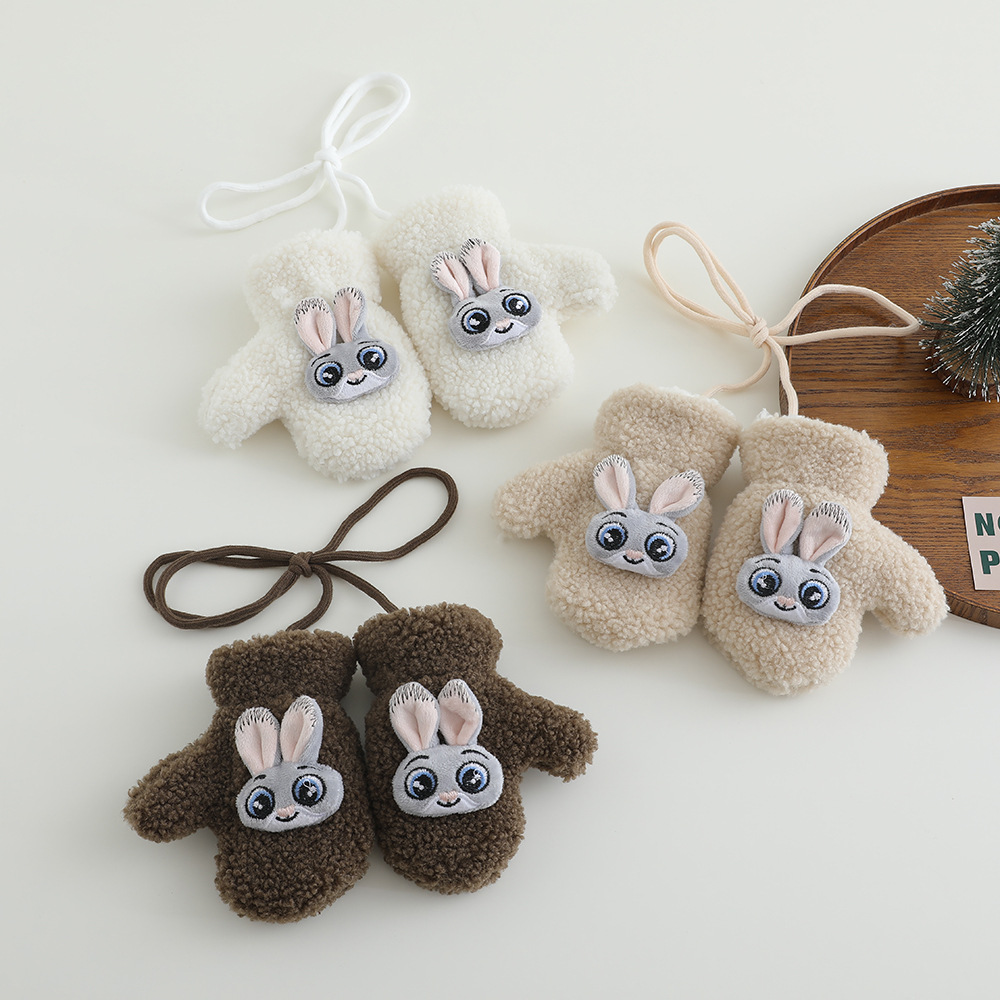 어린이 장갑 겨울 2024 새로운 귀여운 토끼 기모 두꺼운 아기 목 따뜻한 장갑 소년 소녀스토어 가기