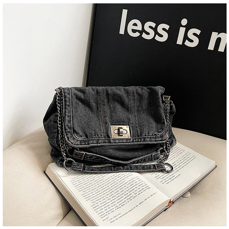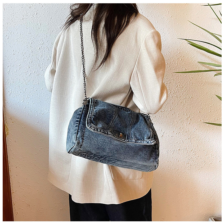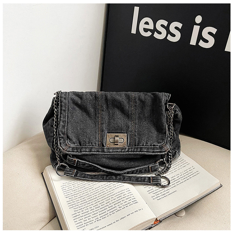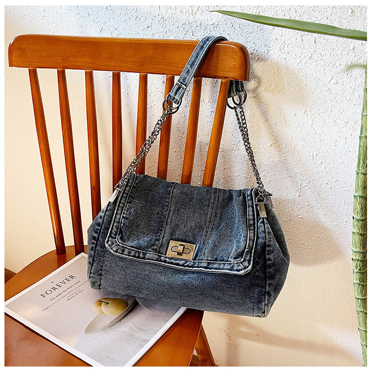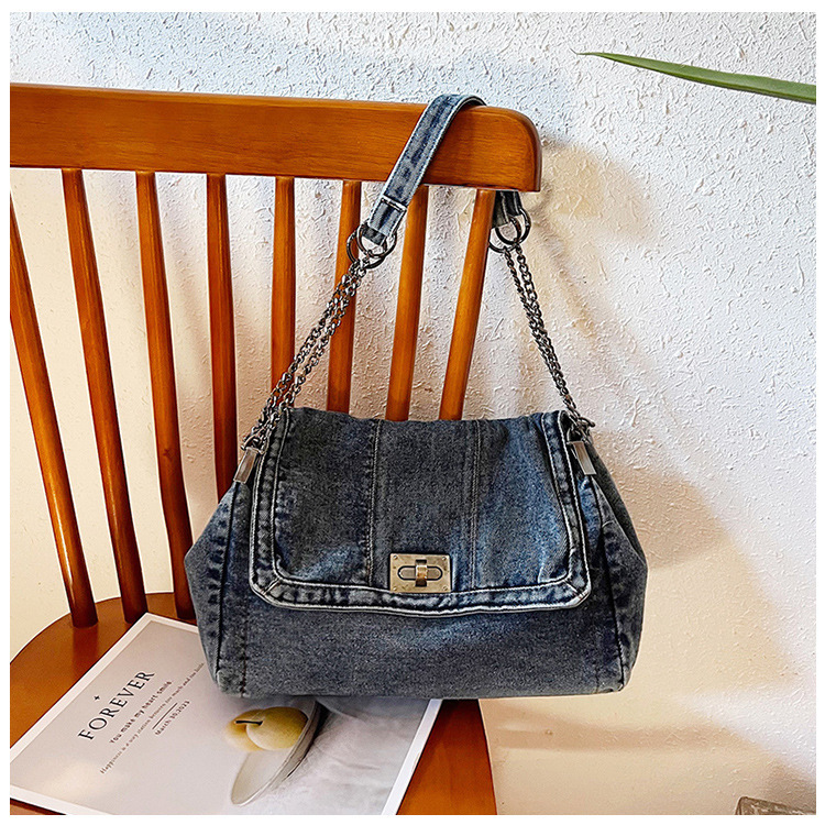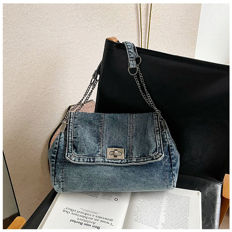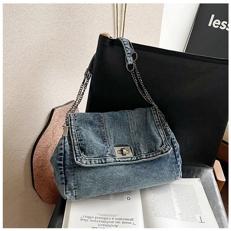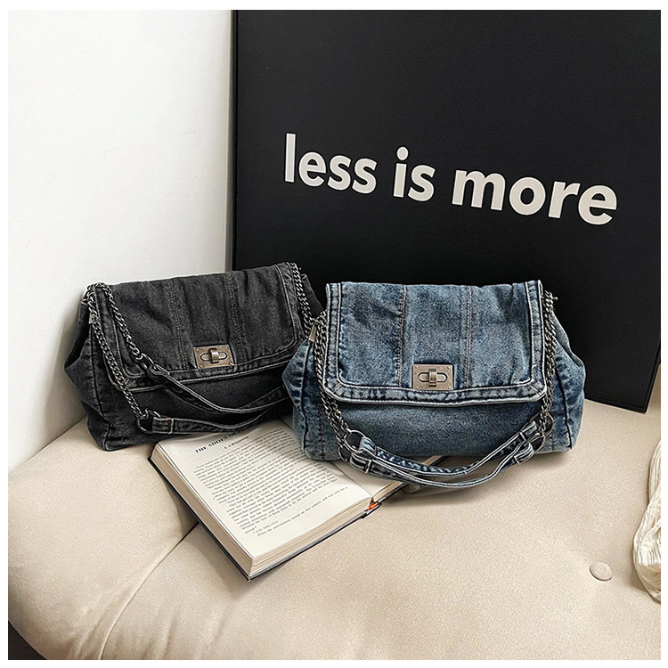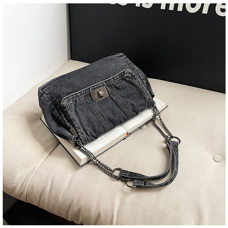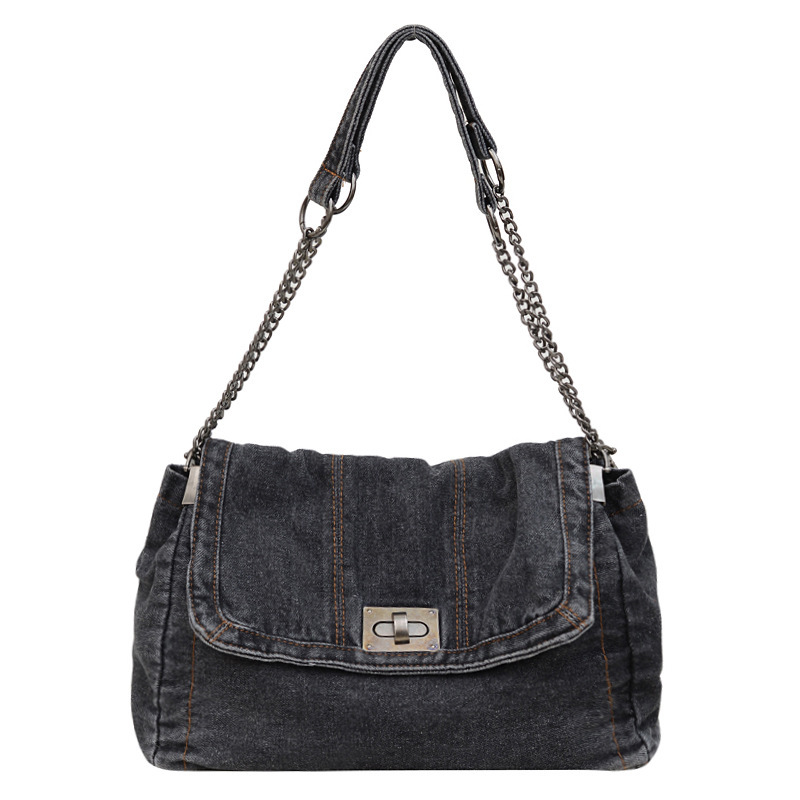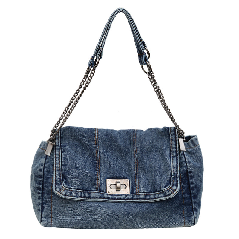 여성을위한 레트로 캐주얼 데님 가방 2024 새로운 하이 엔드 체인 숄더 백 대용량 통근 토트 백