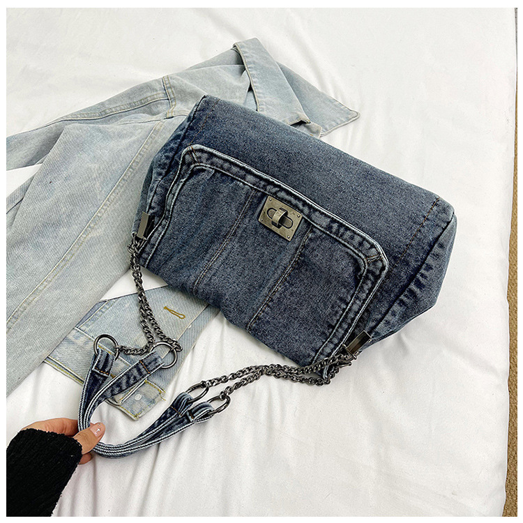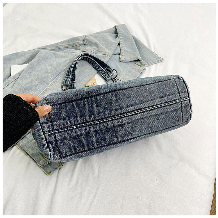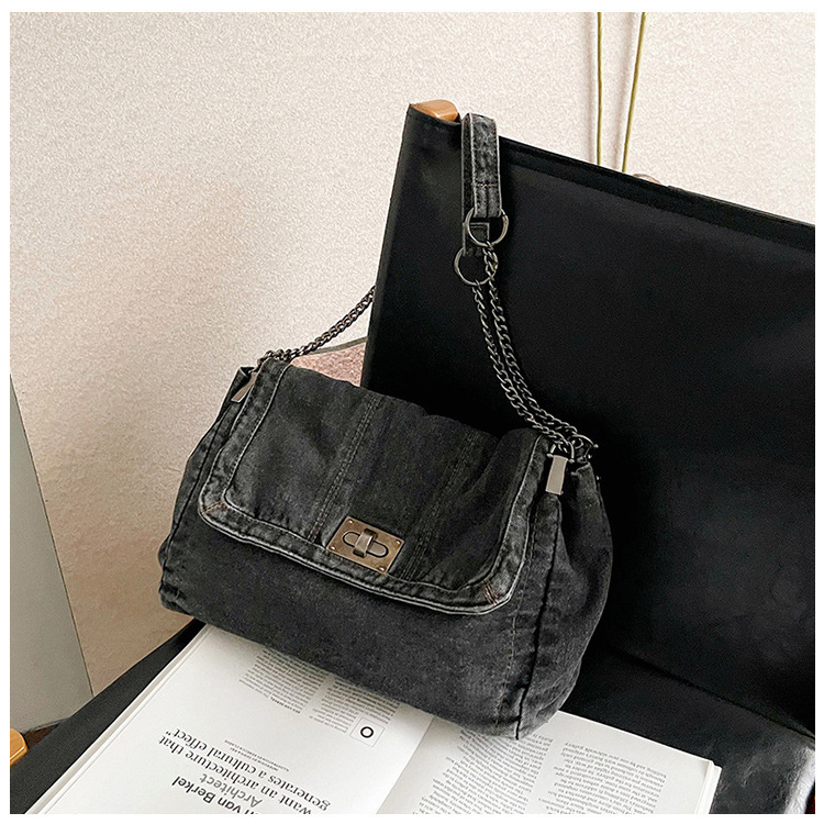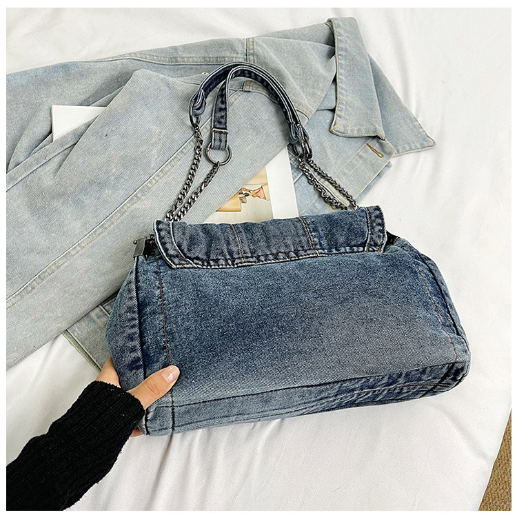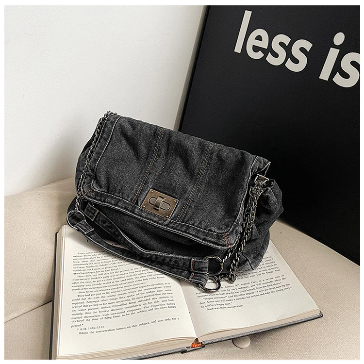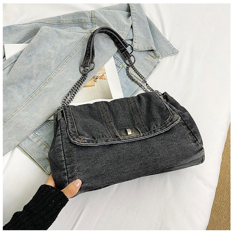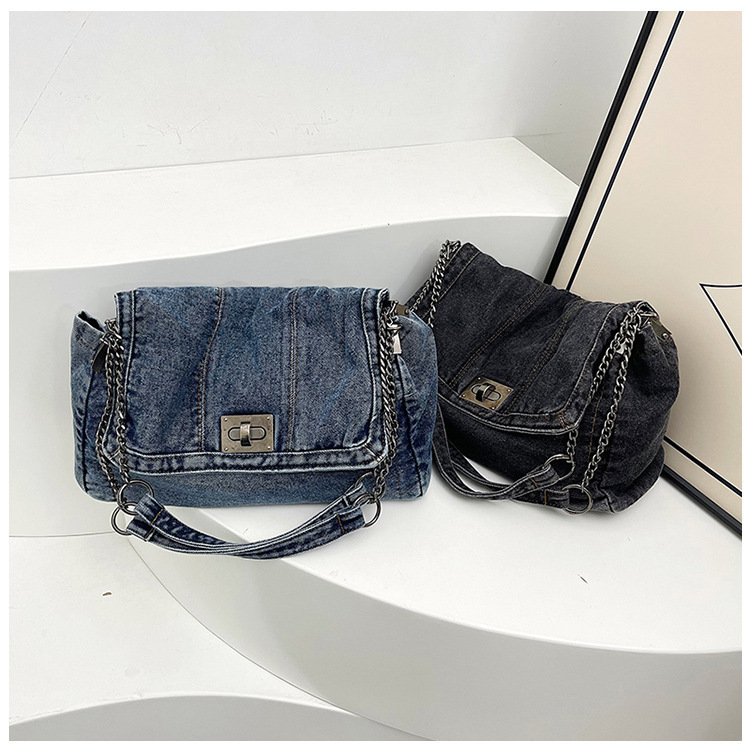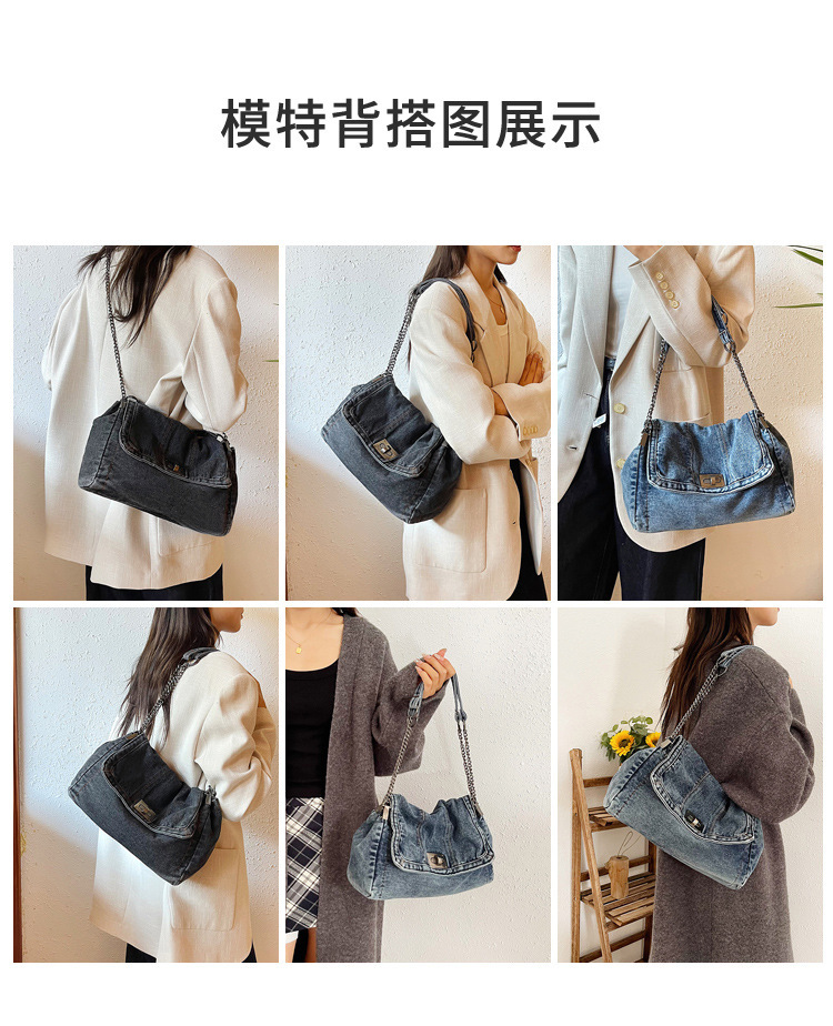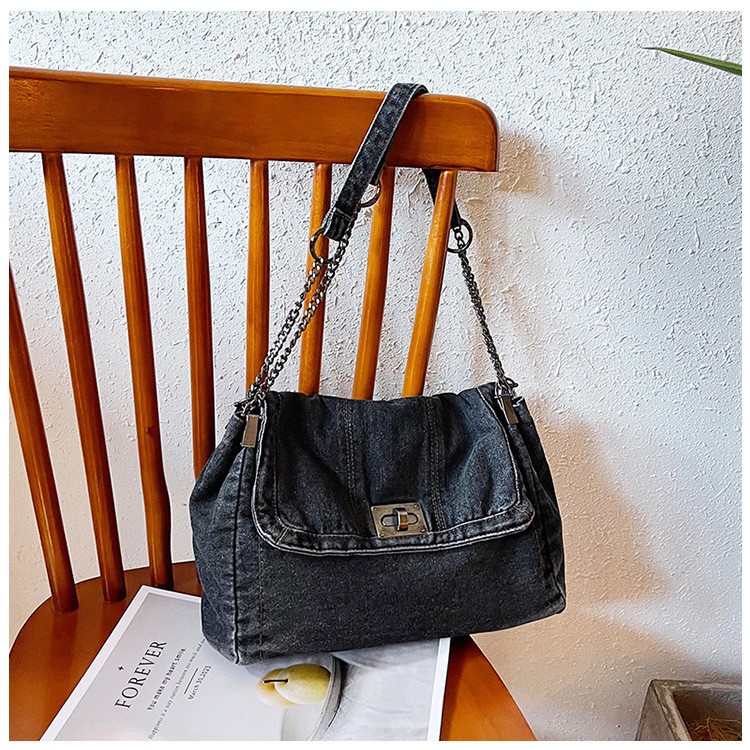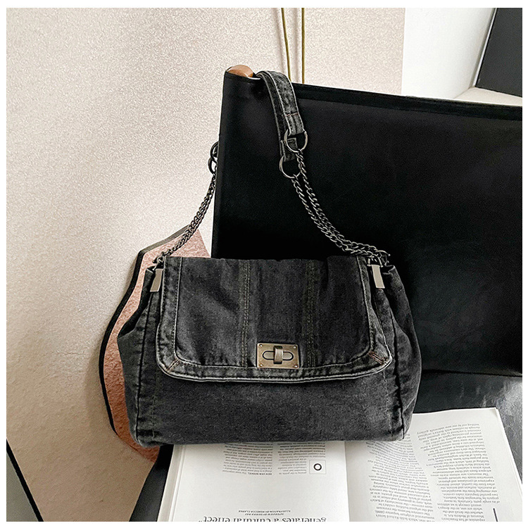 여성을위한 레트로 캐주얼 데님 가방 2024 새로운 하이 엔드 체인 숄더 백 대용량 통근 토트 백