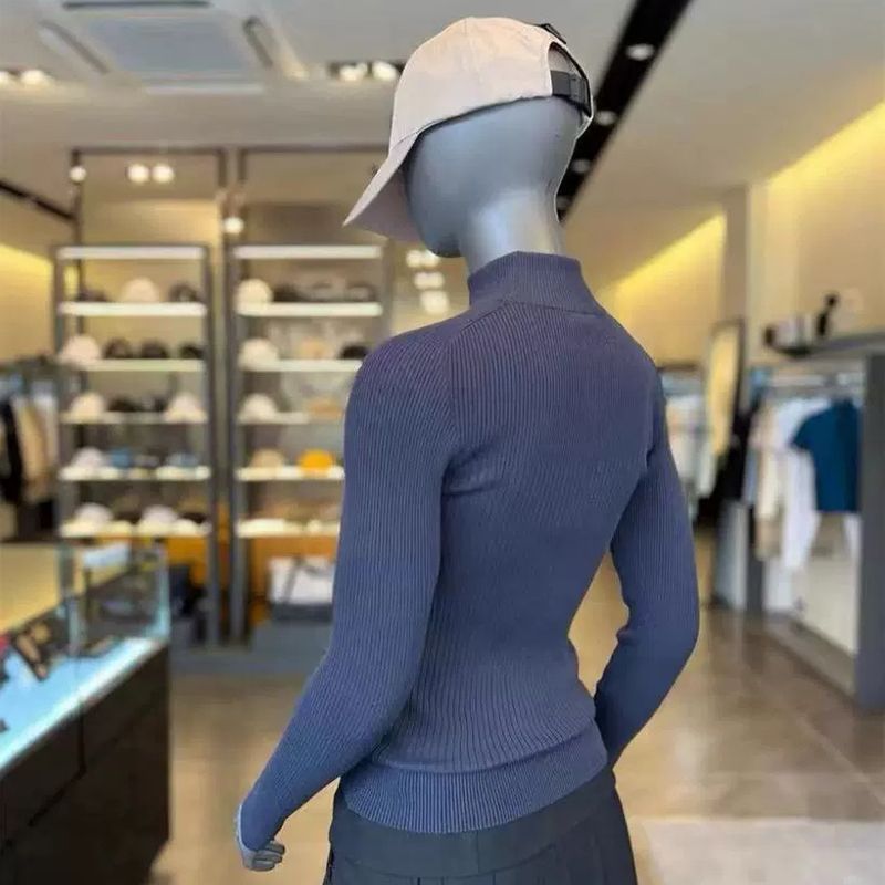 한국 골프 의류 여성의 봄과 가을 편지 인쇄 솔리드 컬러 칼라 니트 탑 슬림 핏 슬리밍 긴 소매스토어 가기