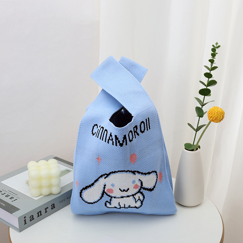 산리오 니트 백 귀여운 만화 핸드백 Ins 가방 여성 짠 가방 새로운 토트 백 핸드백스토어 가기
