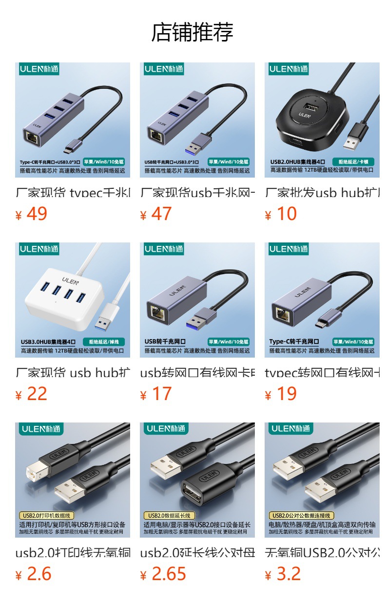 • 0.5m USB2.0 [원형 스타일] USB2.0*4 포트