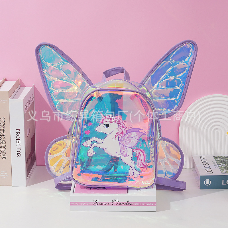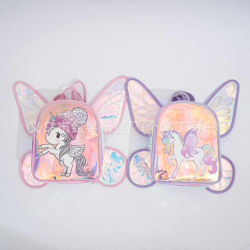 국경 간 유행 나비 날개 가방 TPU 투명 가방 어린이 배낭 대용량 가방 귀여운 유니콘 인쇄