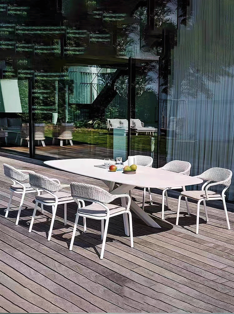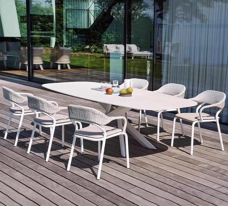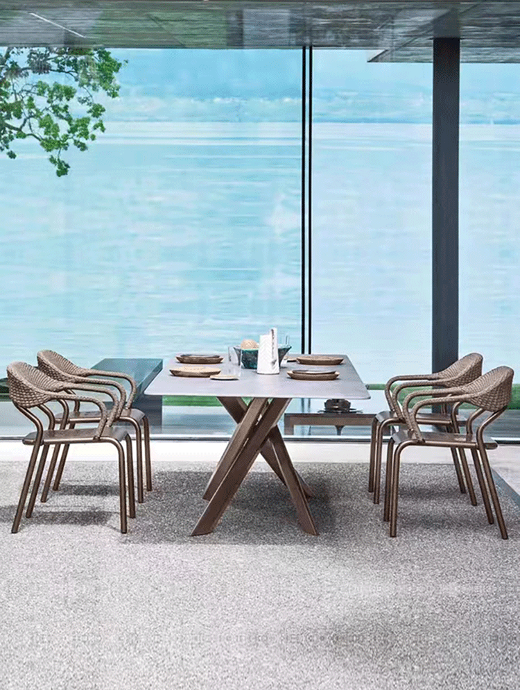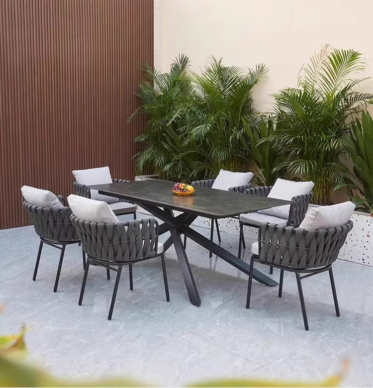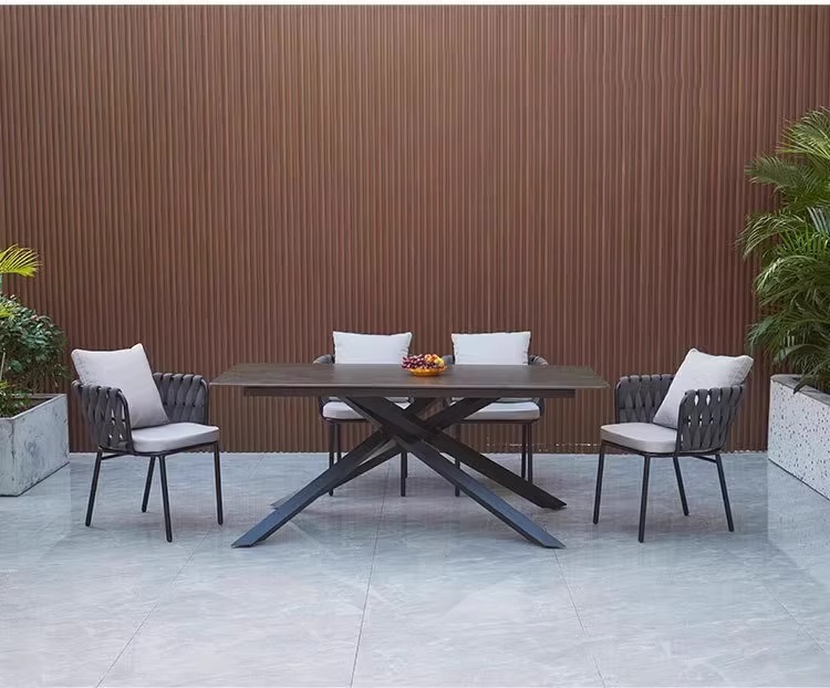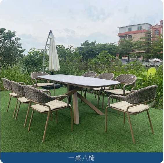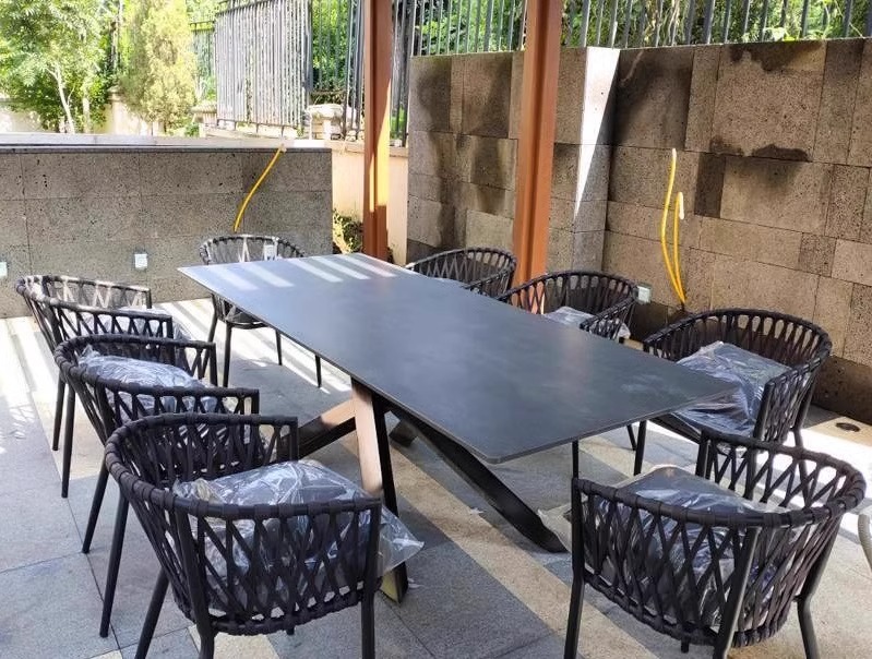 야외 안뜰 테이블과 의자, 빌라 정원, 고급 야외 레저 슬레이트 식탁, 등나무 의자, 야외 발코니 등나무 가구스토어 가기