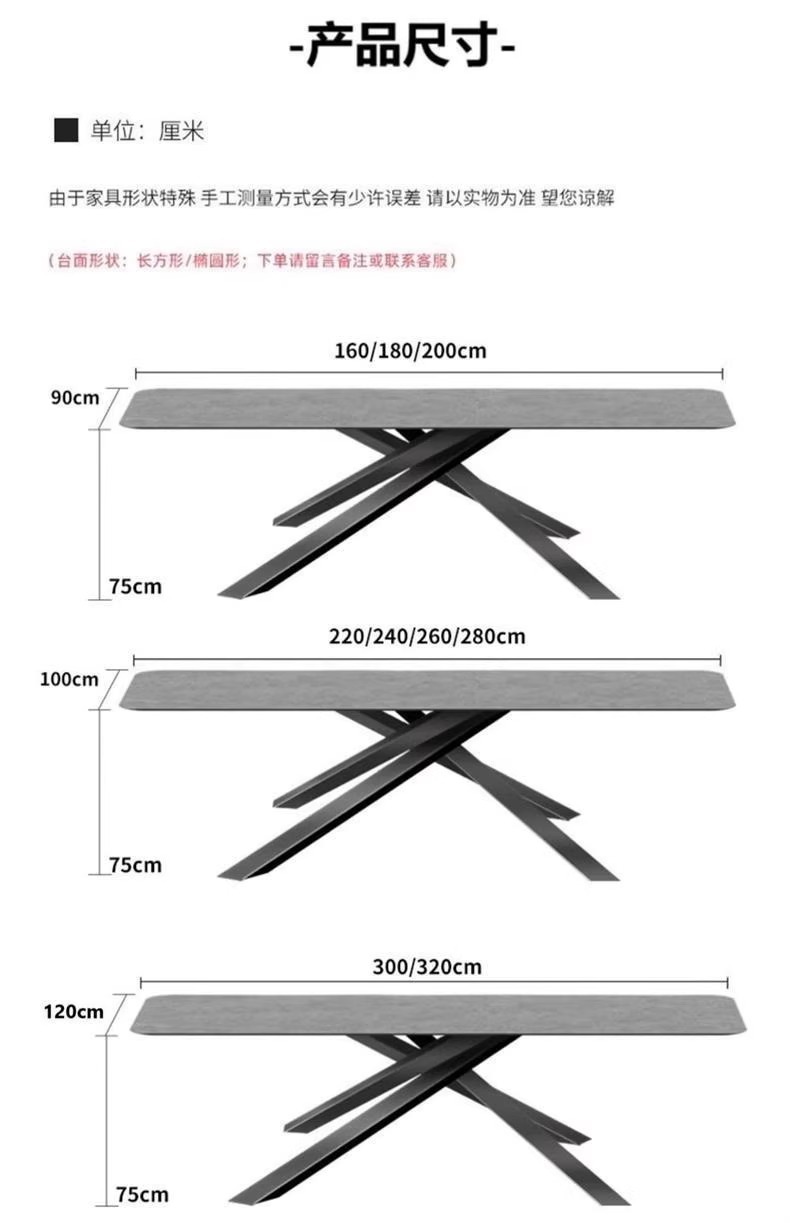 • 160*90*75CM 긴 식탁(테이블 상판은 타원형으로 변경 가능)