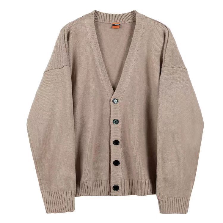니트 스웨터 남자 느슨한 큰 울 칼라 싱글 브레스트 솔리드 컬러 니트 스웨터 카디건 재킷 남자 다크 브라운스토어 가기