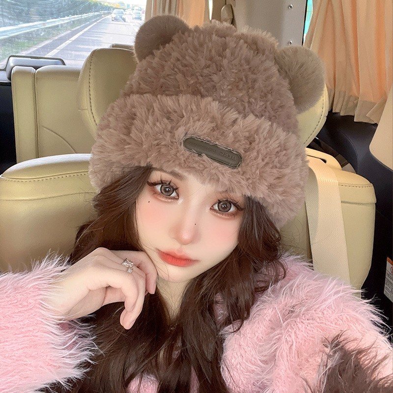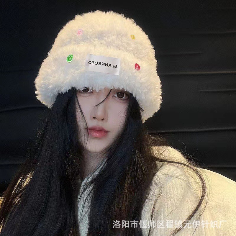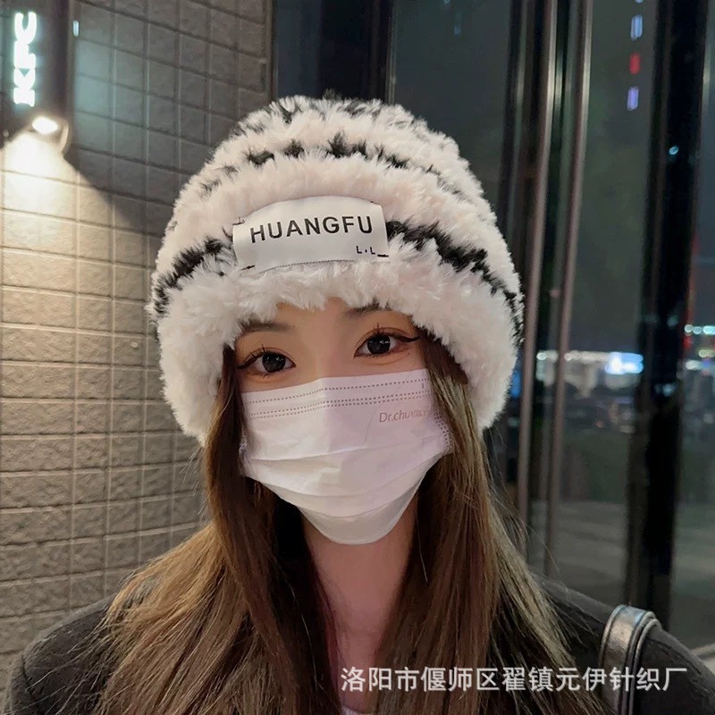 가을 겨울 여성용 플러시 모자, 큰 머리 둘레, 다용도 플러스 벨벳 및 두꺼운 자수, 따뜻하고 방한 귀 보호 니트 모직 모자스토어 가기