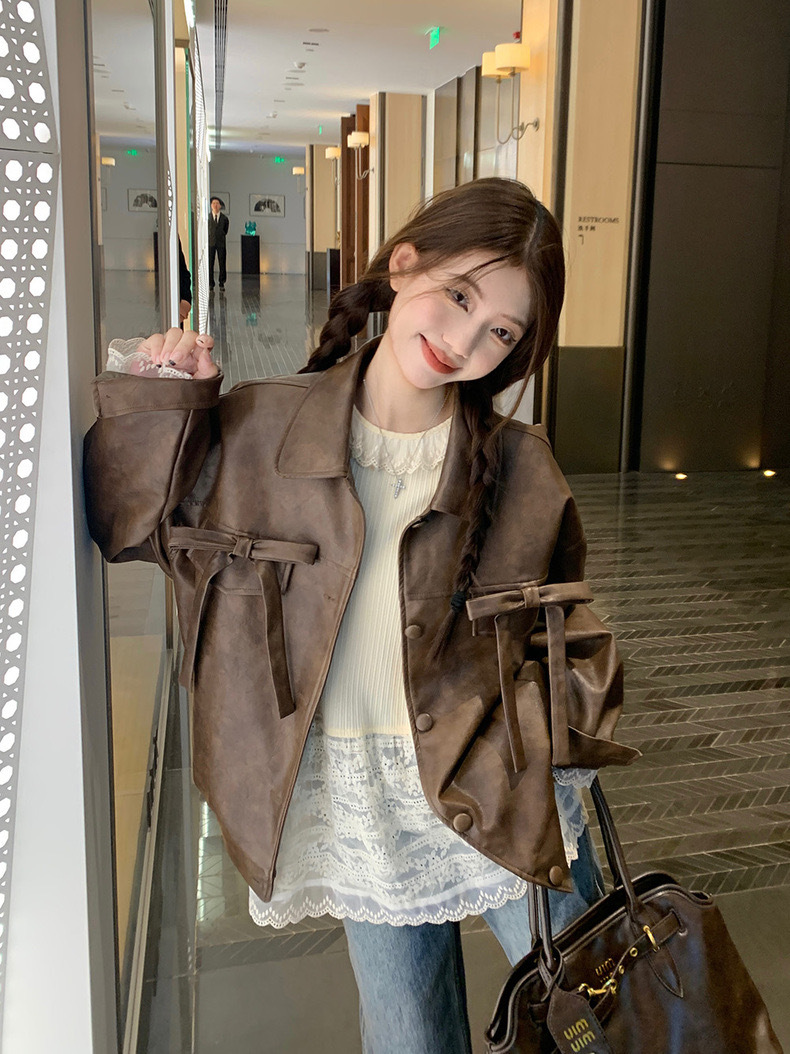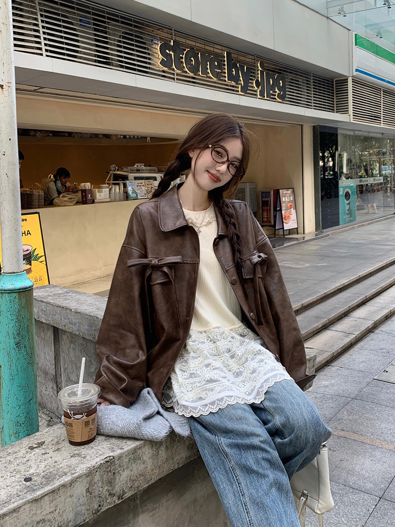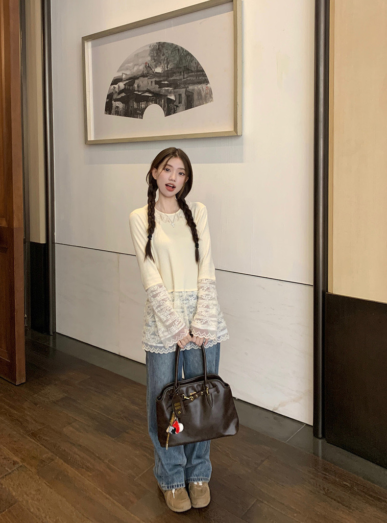 프랑스 스타일 달콤한 소녀의 레이스베이스 셔츠 여성의 봄과 가을 새로운 도착 내부 착용 긴 소매 틈새 바느질 머리 꼭대기 착용
