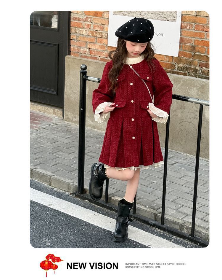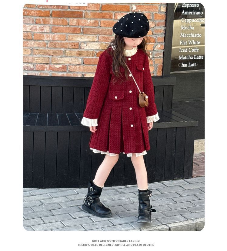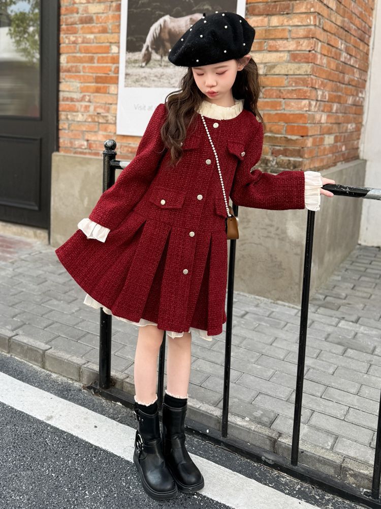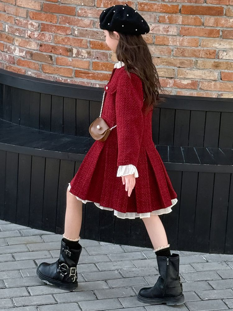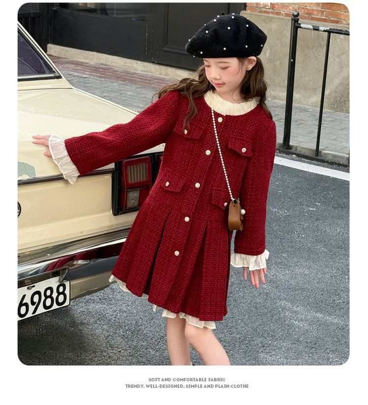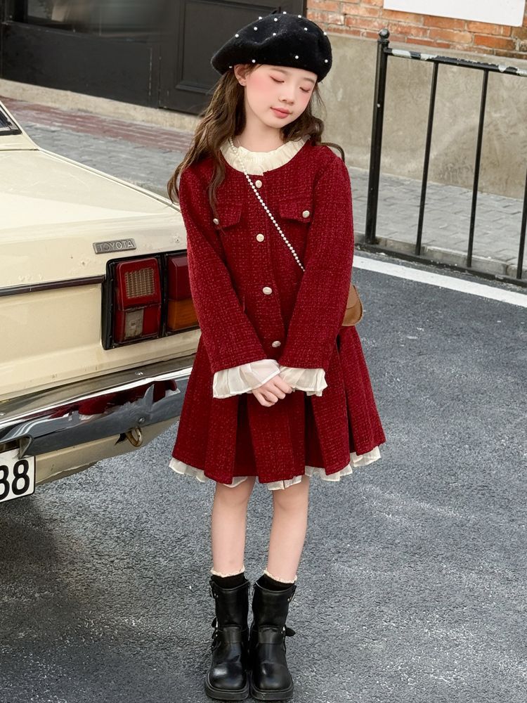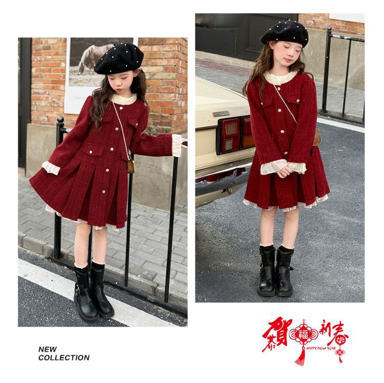 소녀의 향기로운 스타일 원피스 년 원피스 가을과 겨울 원피스 소녀의 서양식 레이스 공주 스커트 달콤한 두꺼운 주름 치마