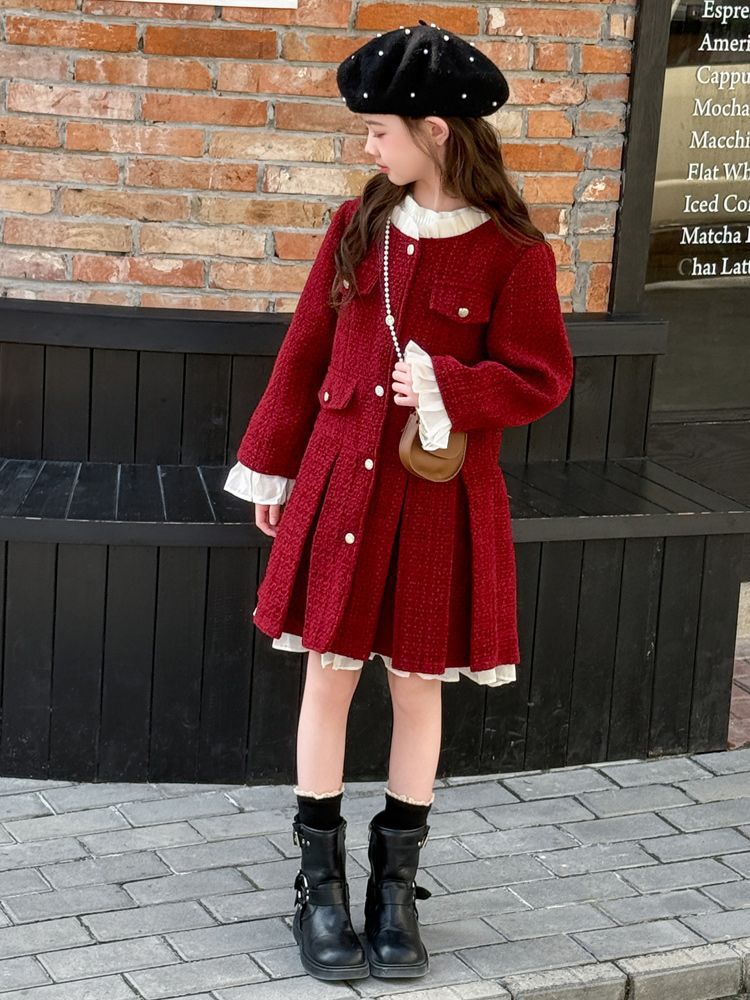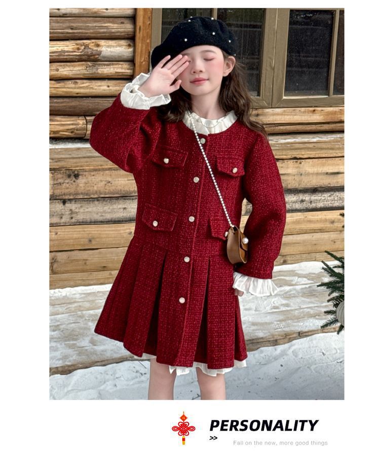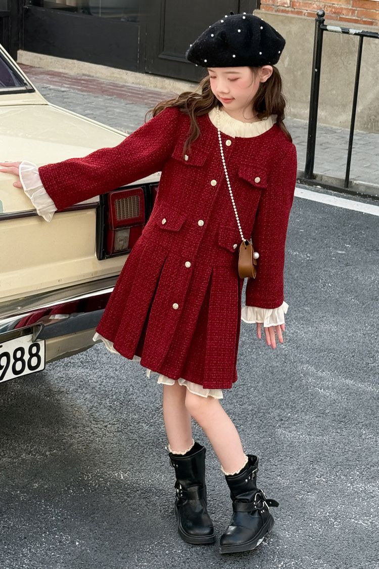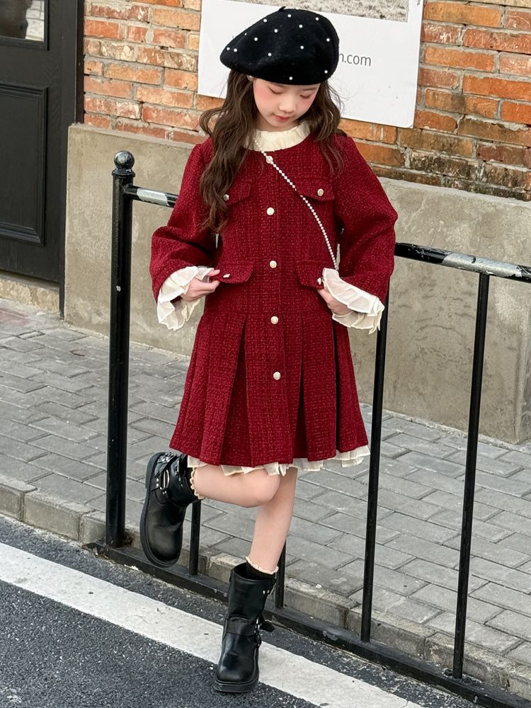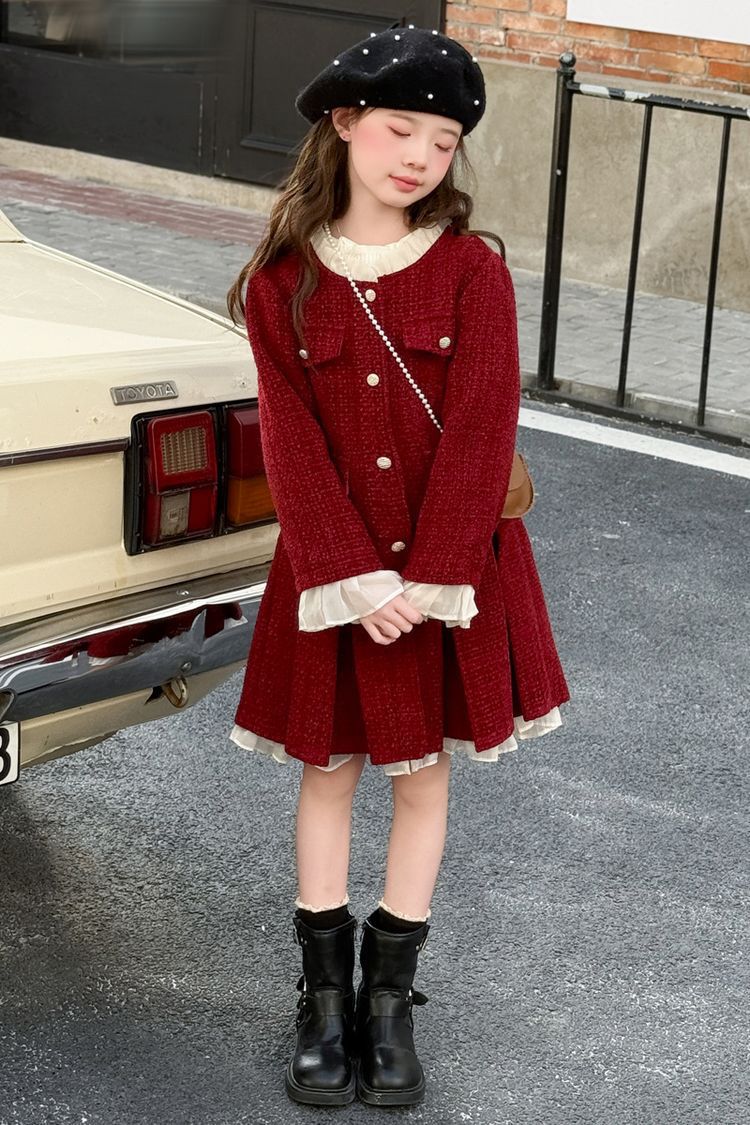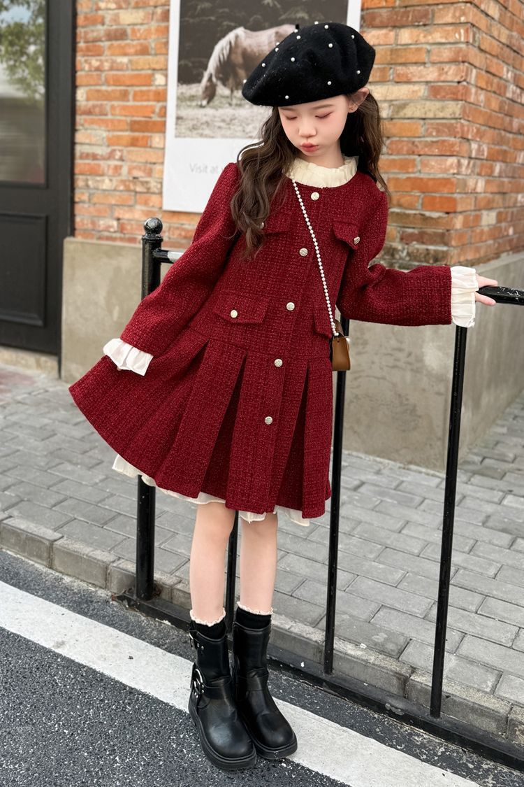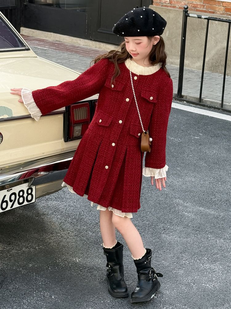 소녀의 향기로운 스타일 원피스 년 원피스 가을과 겨울 원피스 소녀의 서양식 레이스 공주 스커트 달콤한 두꺼운 주름 치마