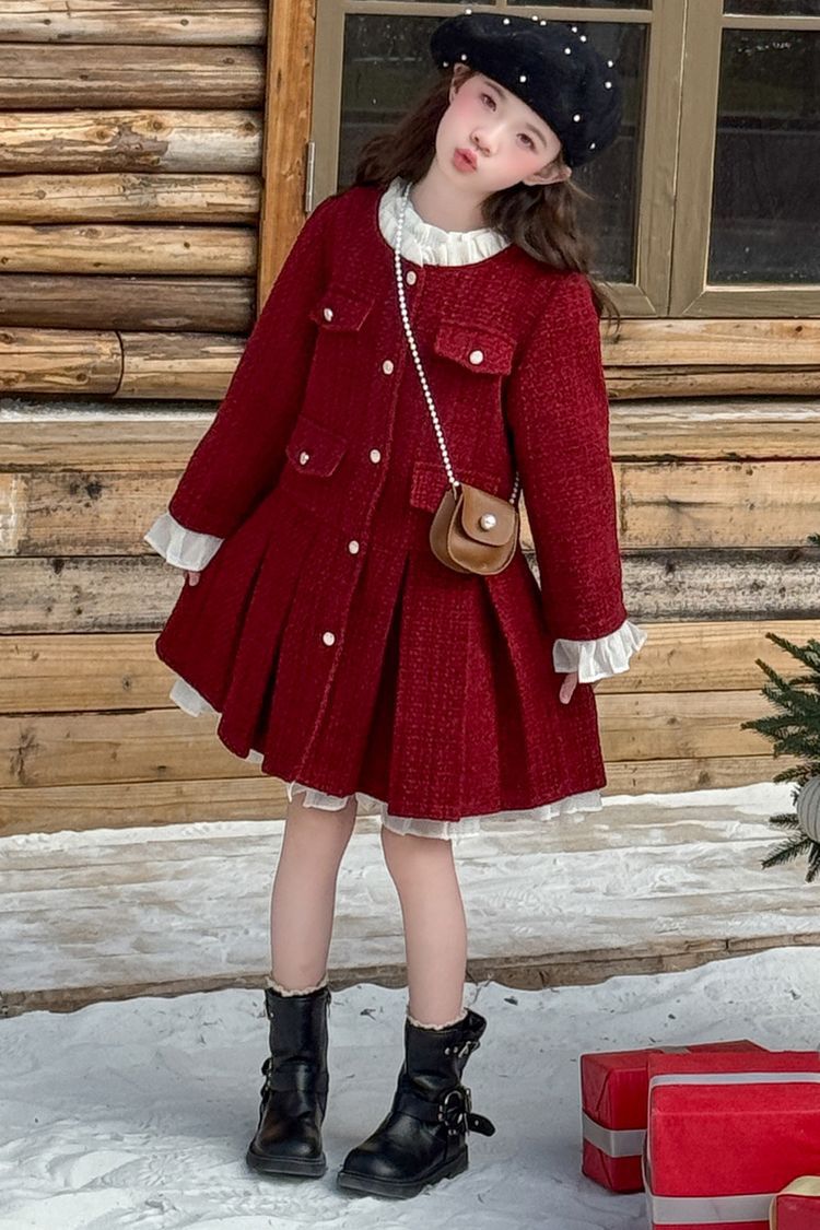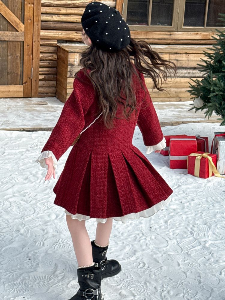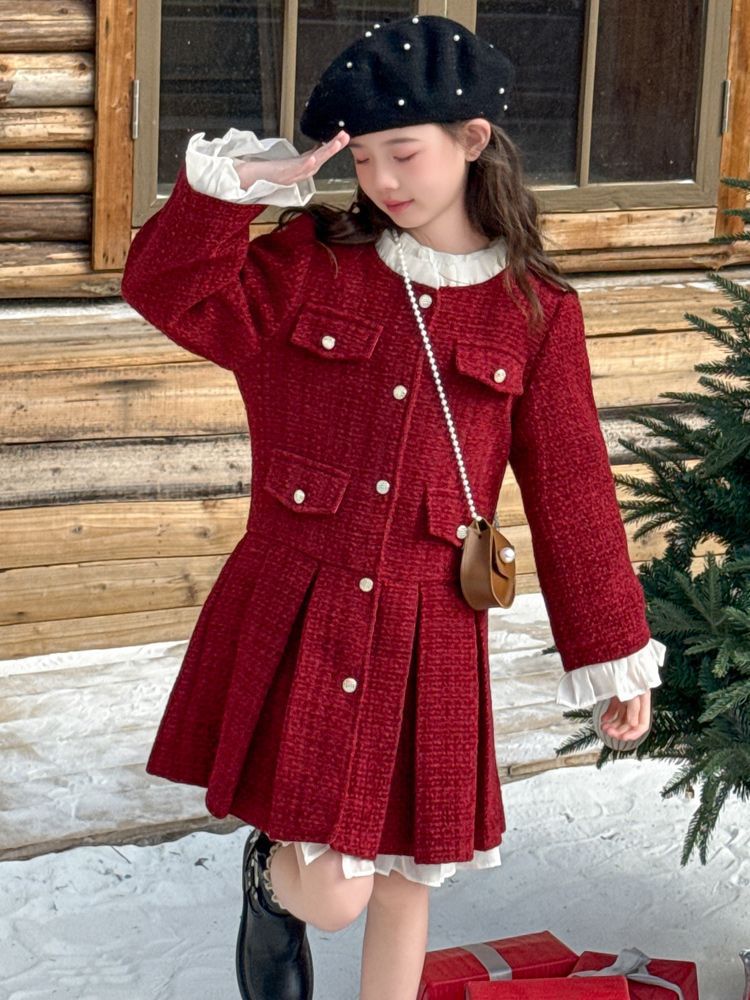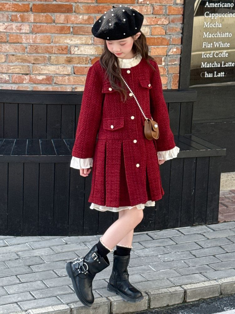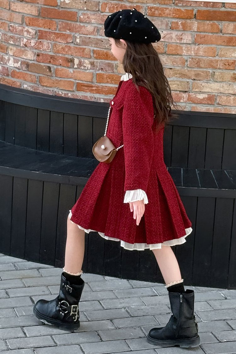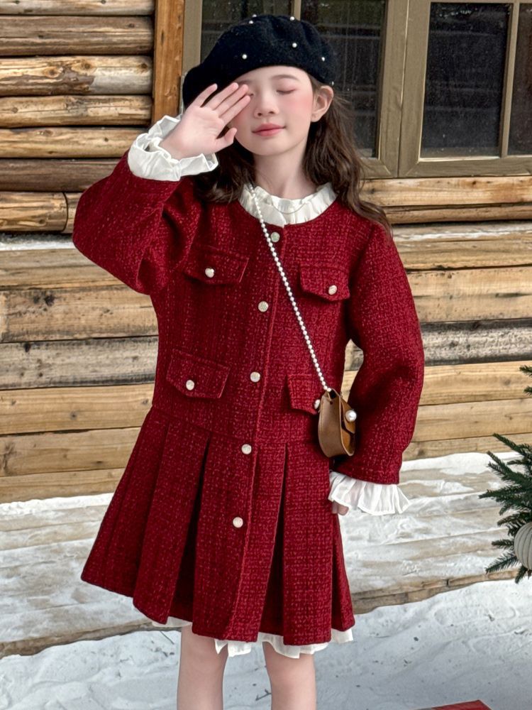 소녀의 향기로운 스타일 원피스 년 원피스 가을과 겨울 원피스 소녀의 서양식 레이스 공주 스커트 달콤한 두꺼운 주름 치마
