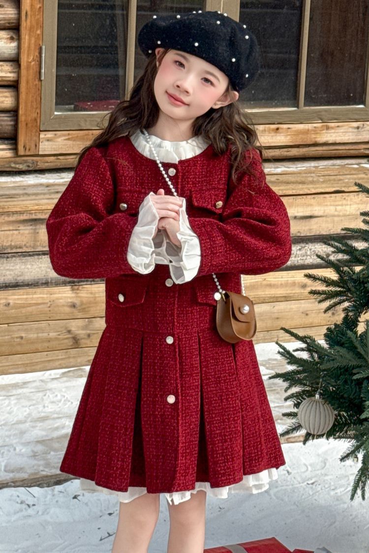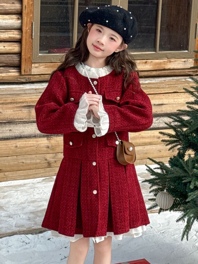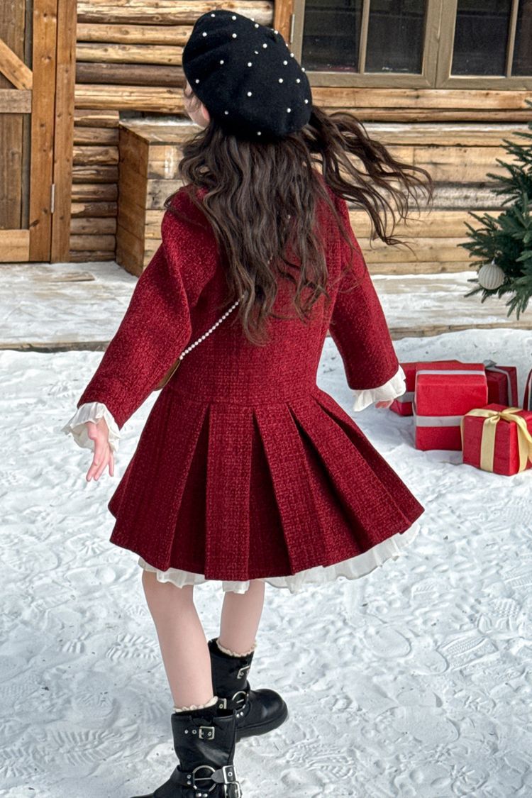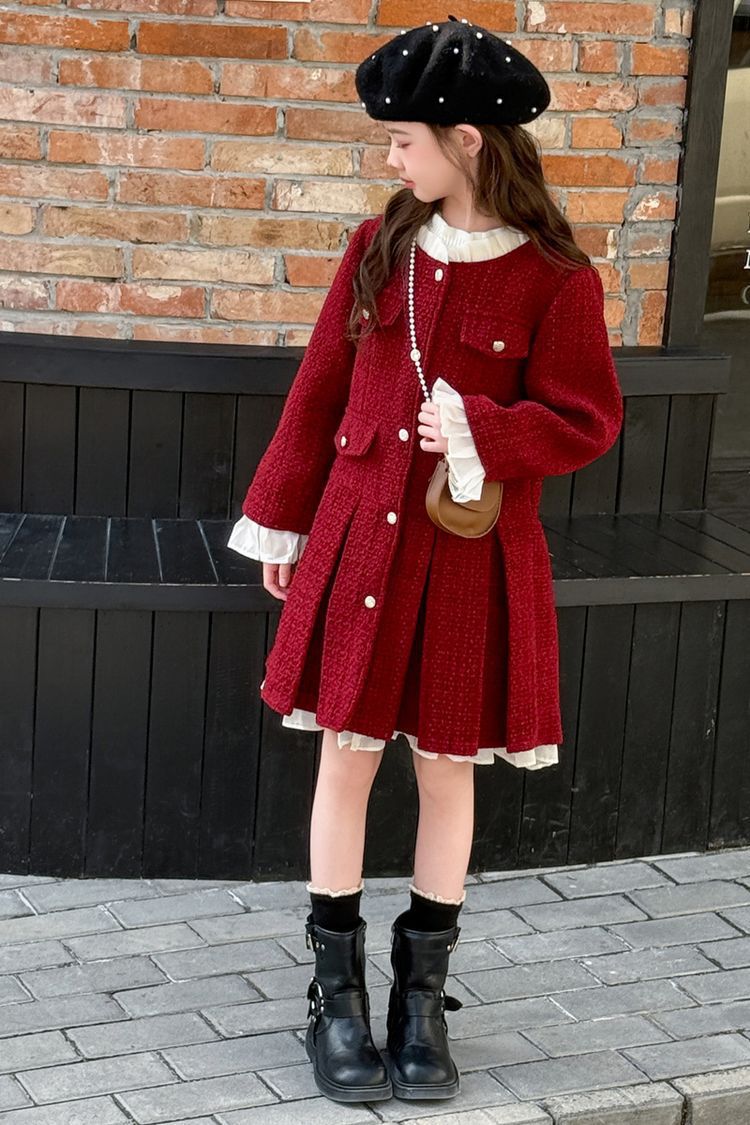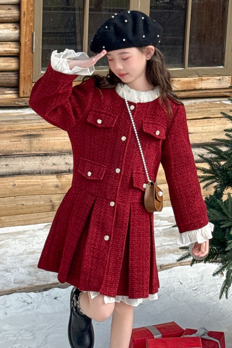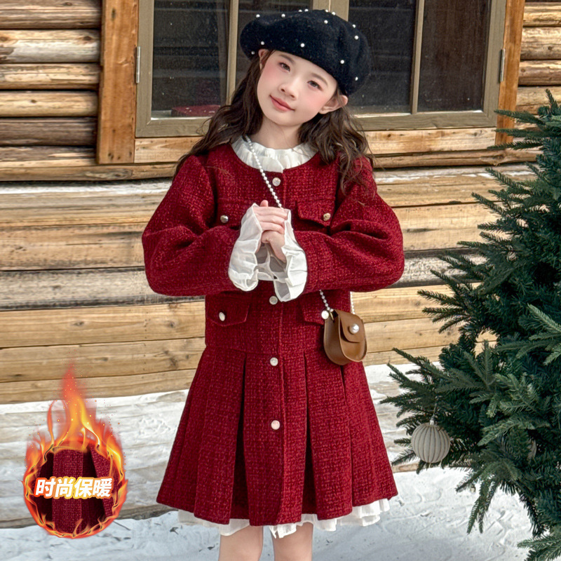 소녀의 향기로운 스타일 원피스 년 원피스 가을과 겨울 원피스 소녀의 서양식 레이스 공주 스커트 달콤한 두꺼운 주름 치마