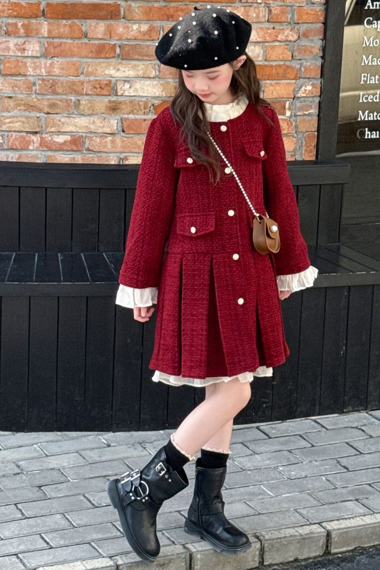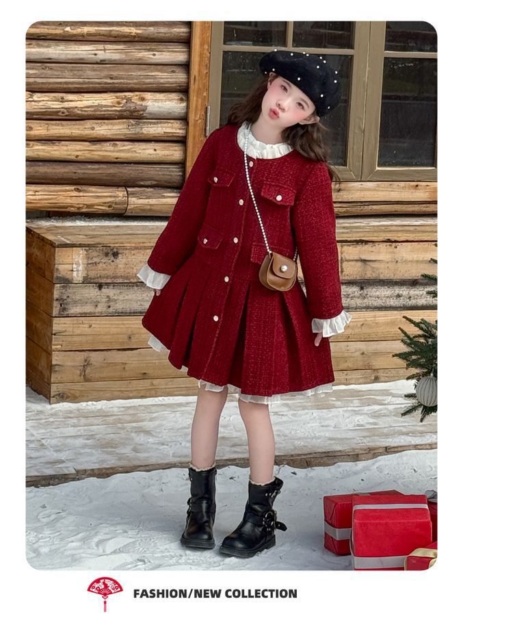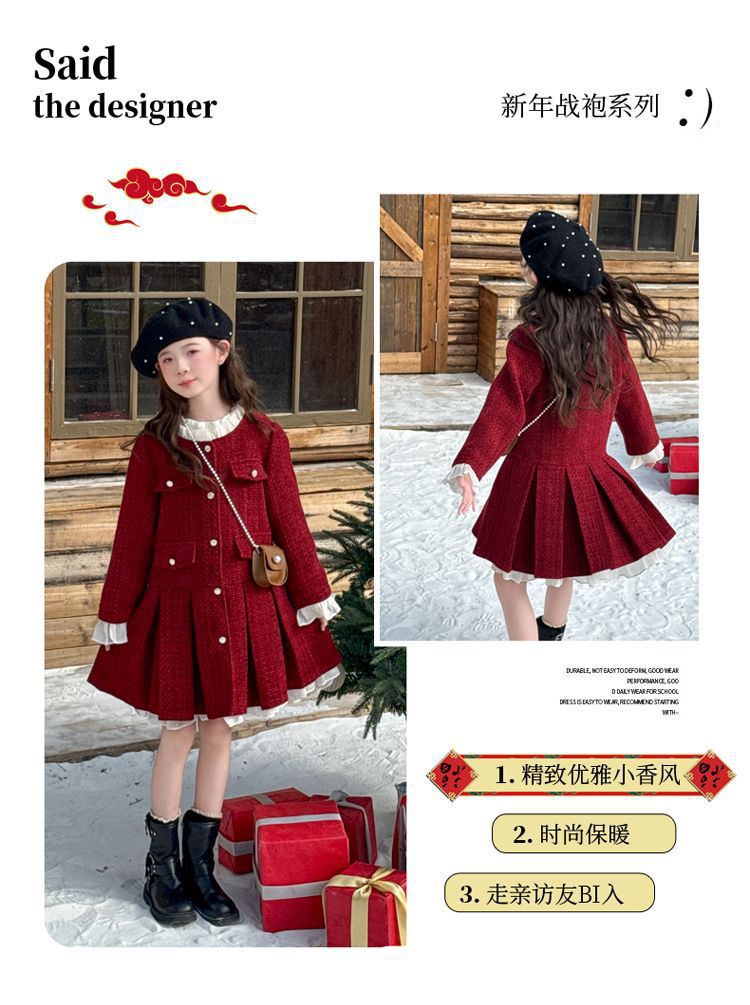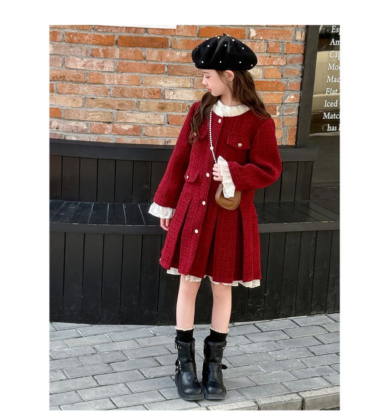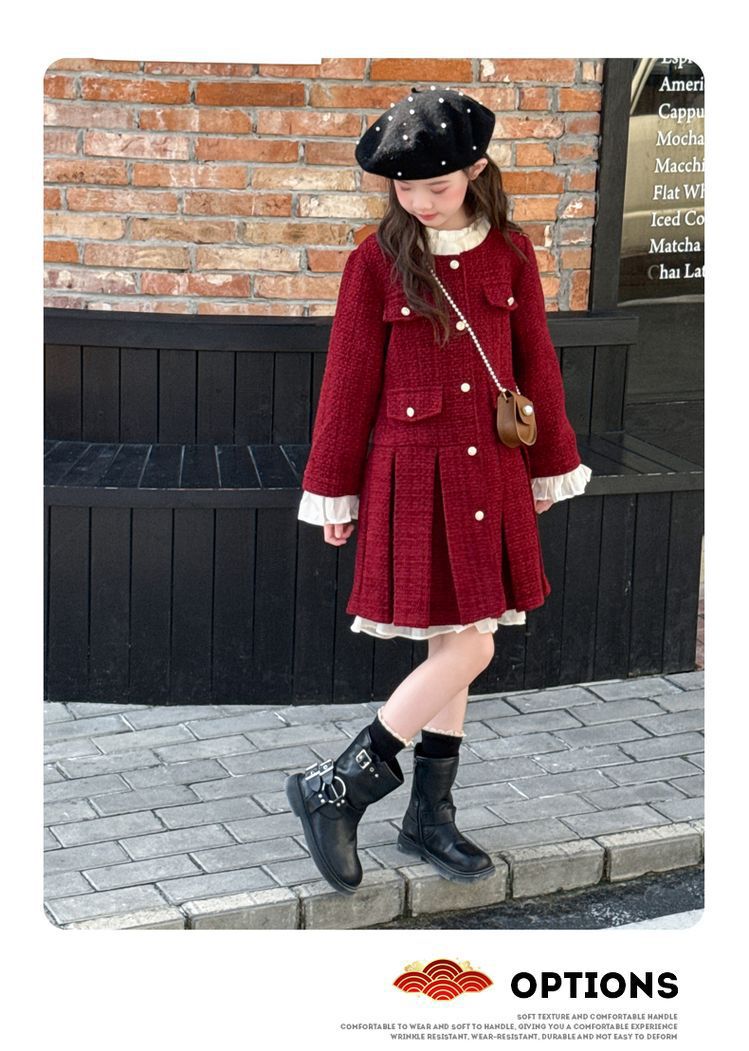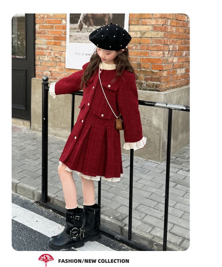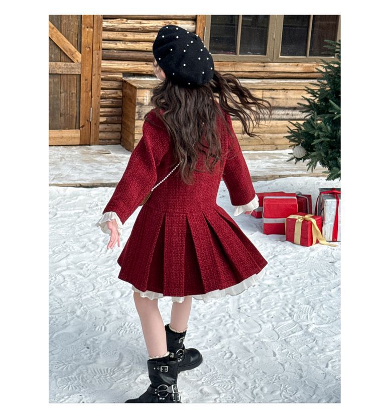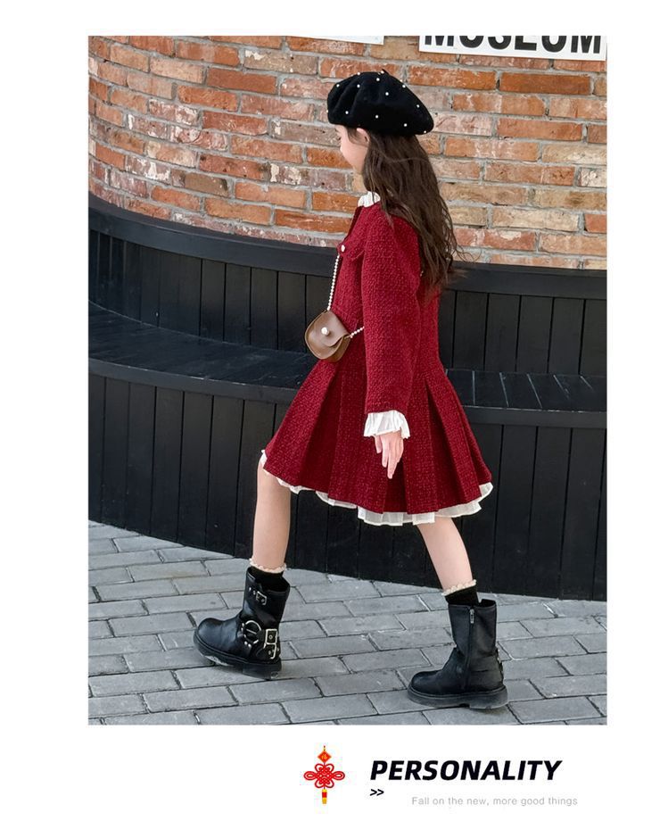 소녀의 향기로운 스타일 원피스 년 원피스 가을과 겨울 원피스 소녀의 서양식 레이스 공주 스커트 달콤한 두꺼운 주름 치마스토어 가기
