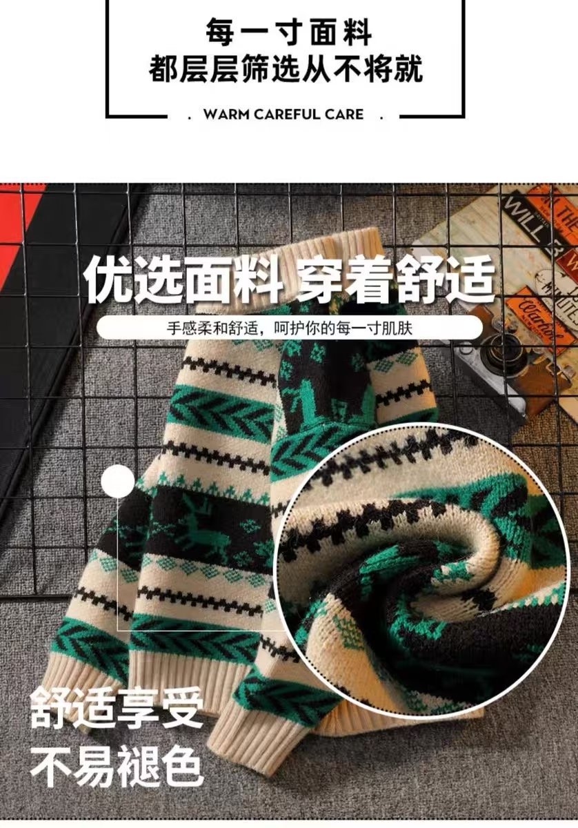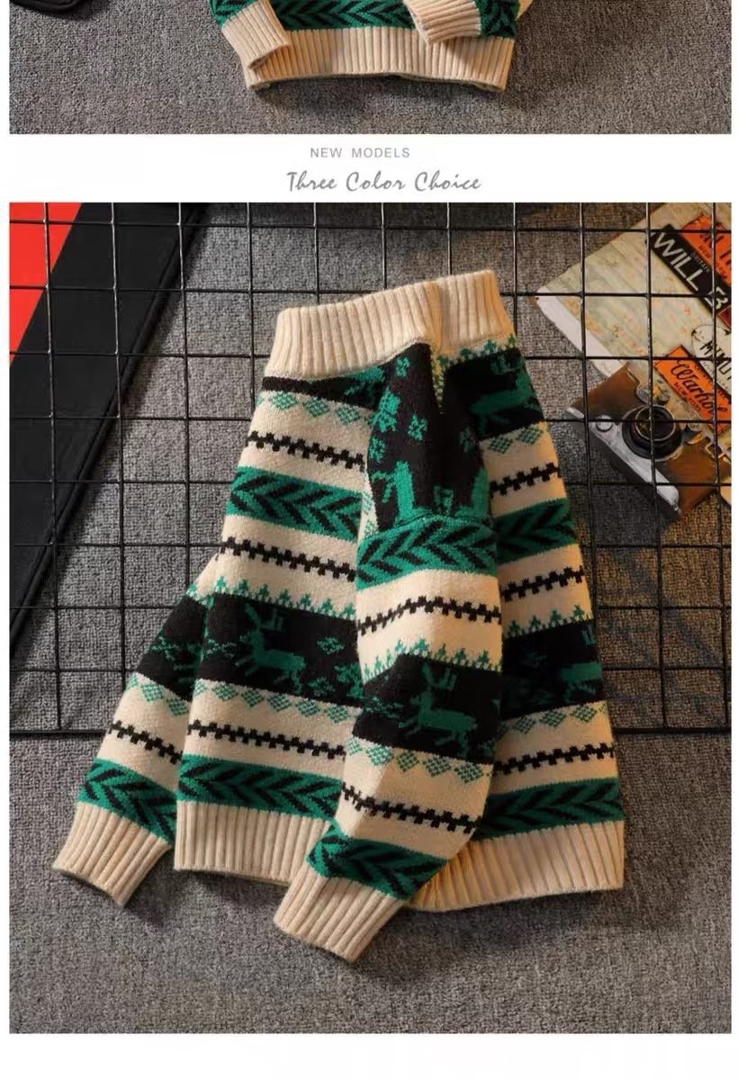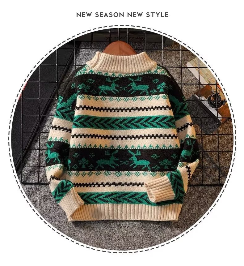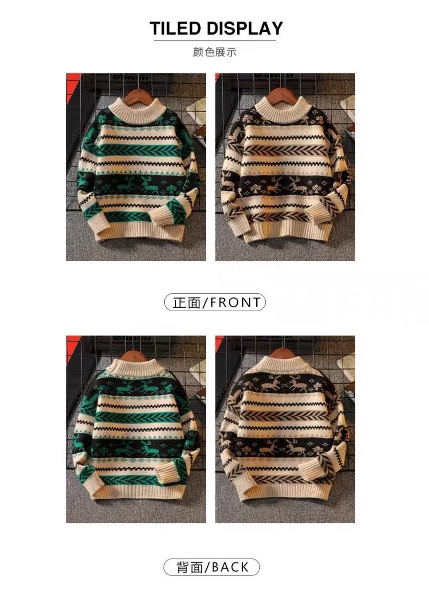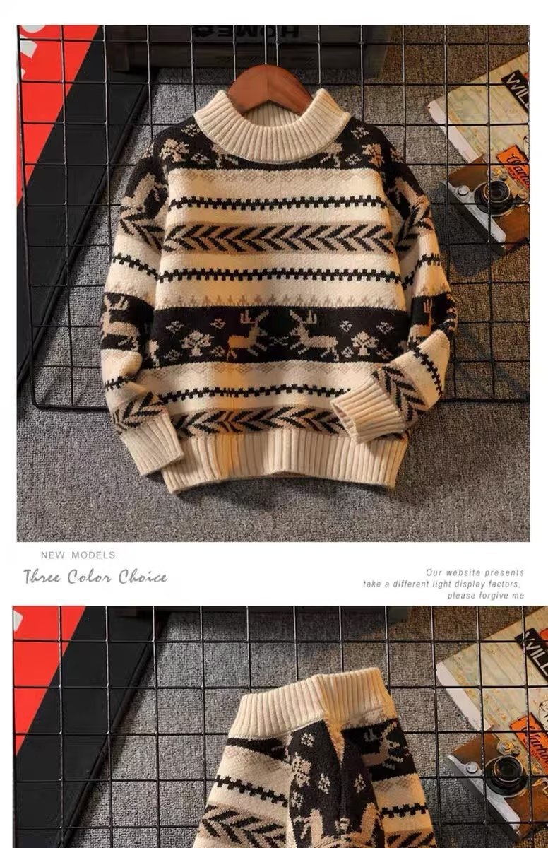 소년 스웨터 2024 가을과 겨울 새로운 큐크 어린이 둥근 목 바닥 스웨터 두꺼운 줄무늬 트렌디 탑스토어 가기