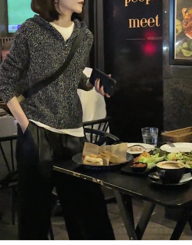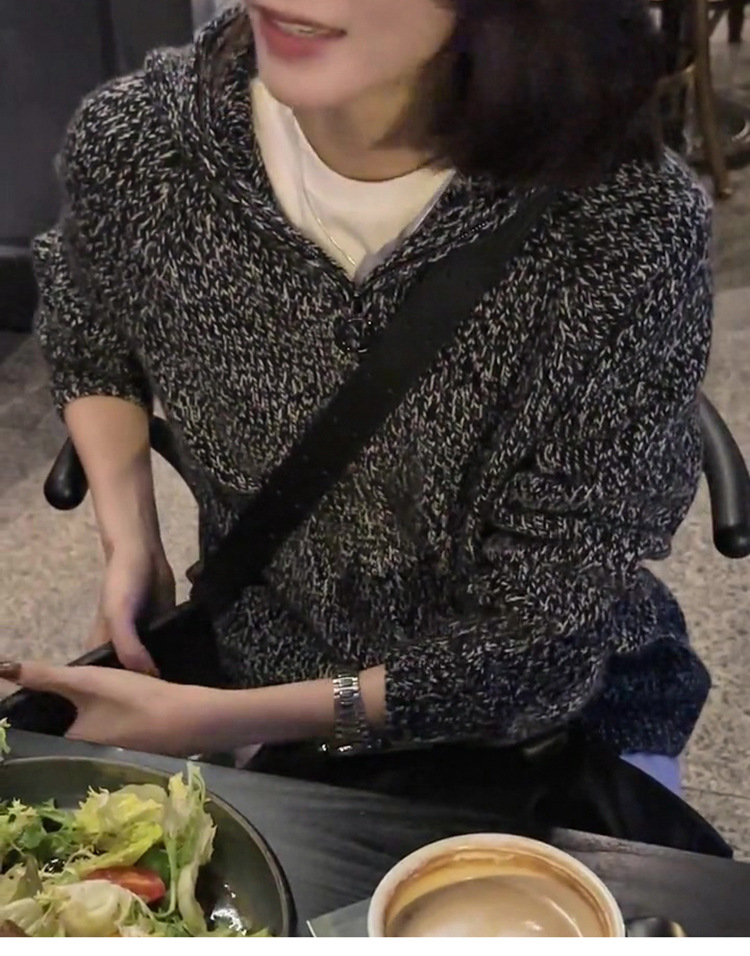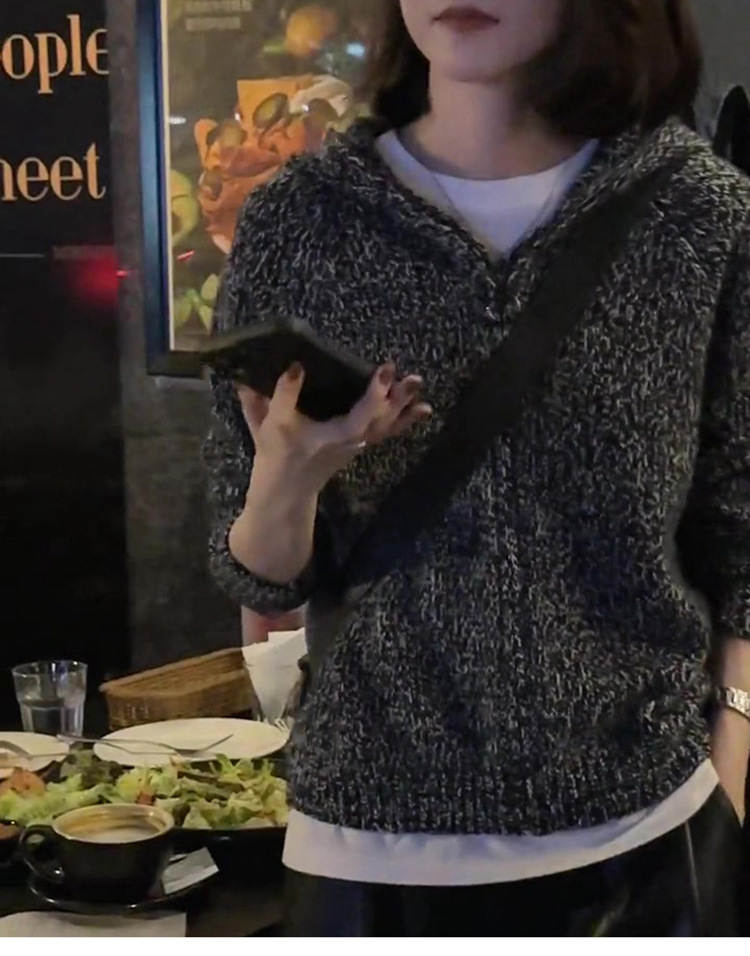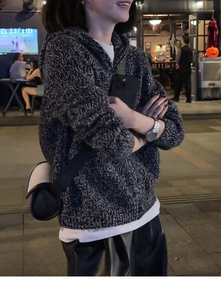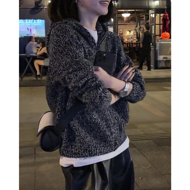 100% 순수 양모 스웨터 여성용 고급 센스 클립 멜란지 그레이 후드 캐시미어 니트 카디건 느슨한 짧은 지퍼 재킷스토어 가기