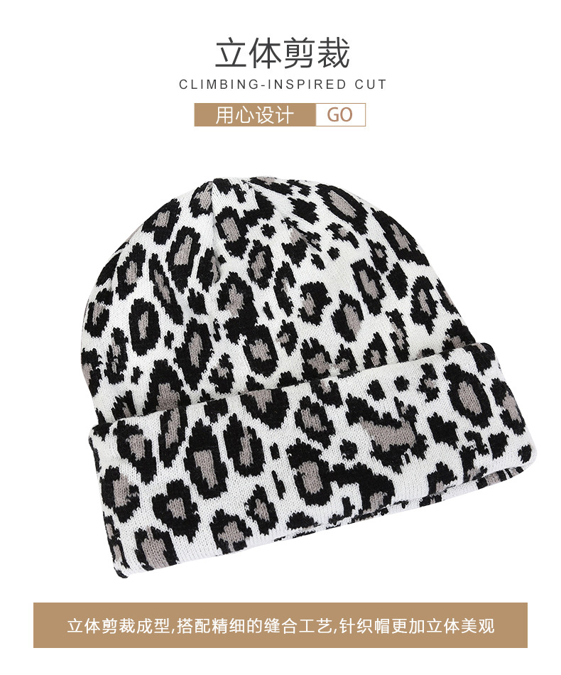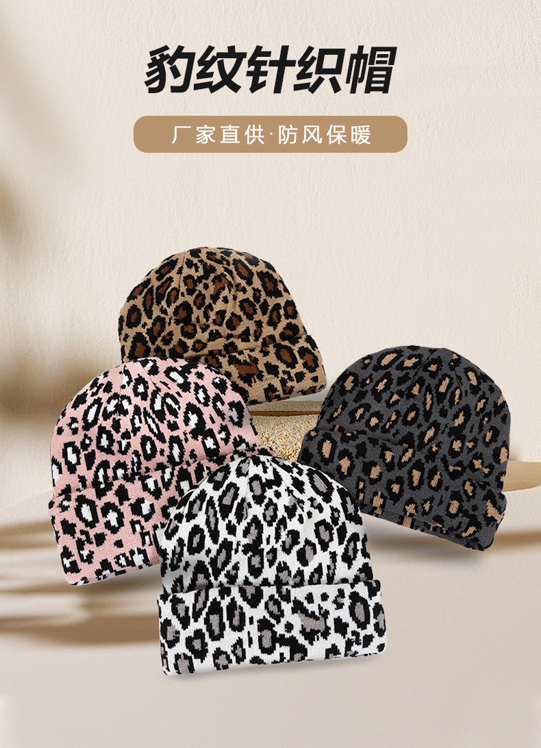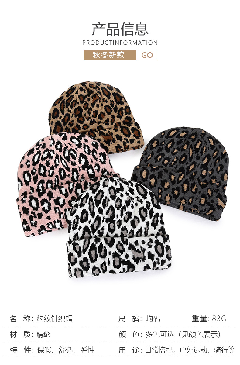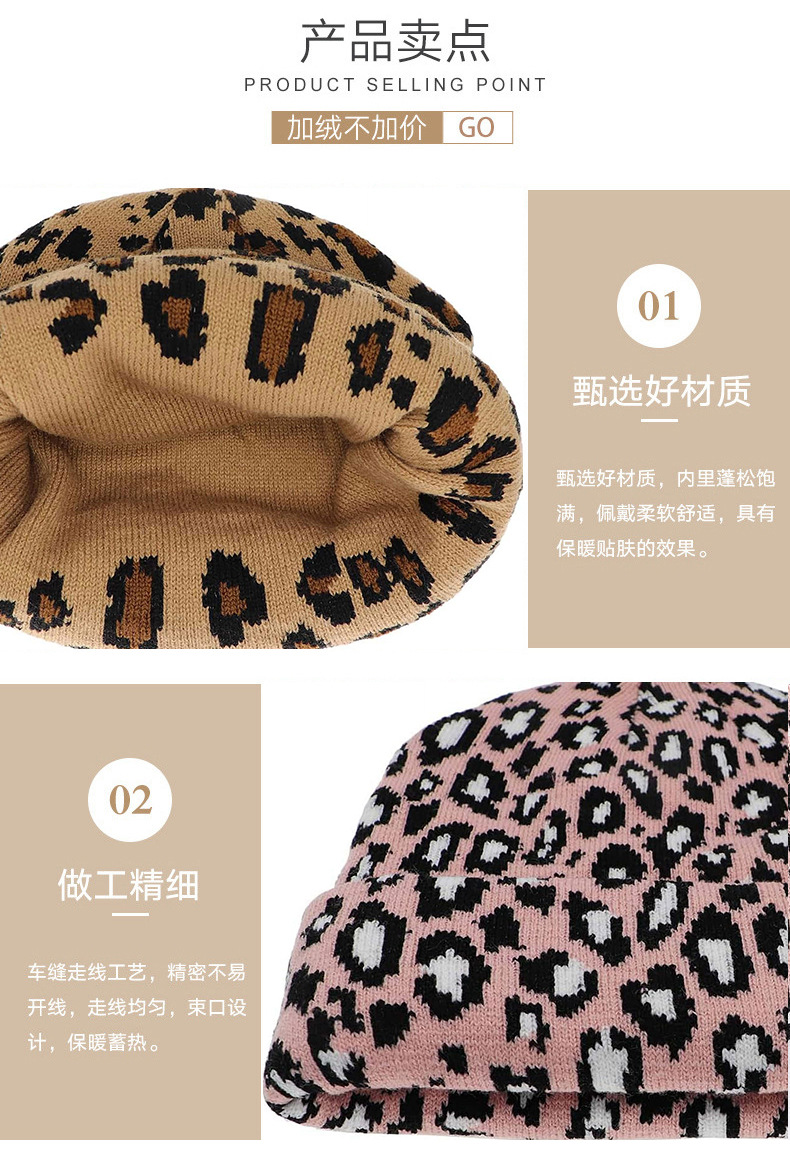 한국식 독특한 레오파드 무늬 니트 양모 모자 빈티지 봄 가을과 겨울 두꺼운 곡선 귀 보호 유행 여성 모자스토어 가기