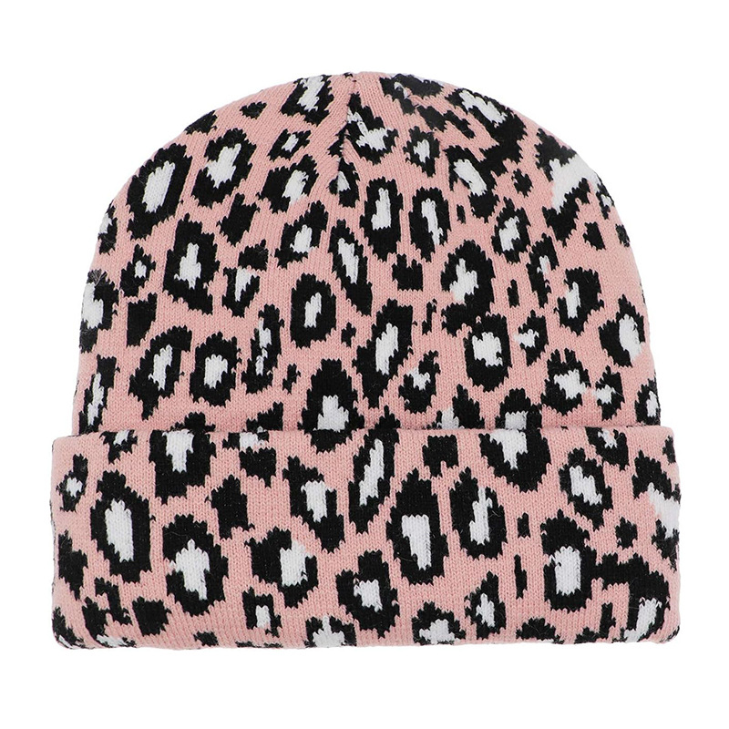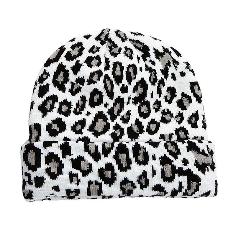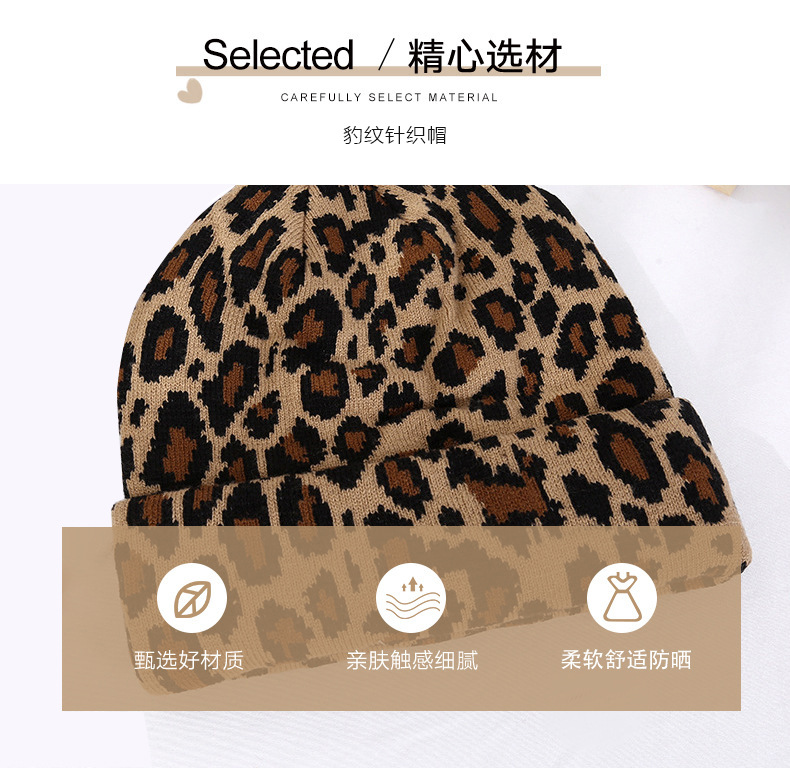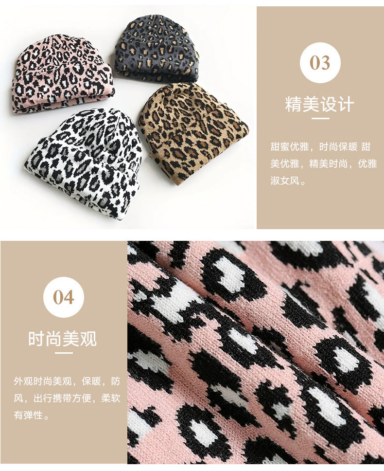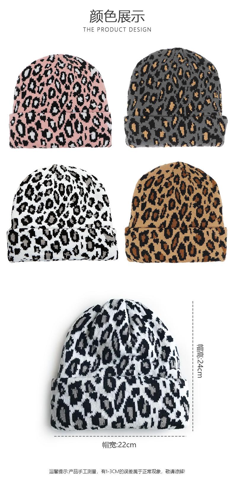 한국식 독특한 레오파드 무늬 니트 양모 모자 빈티지 봄 가을과 겨울 두꺼운 곡선 귀 보호 유행 여성 모자