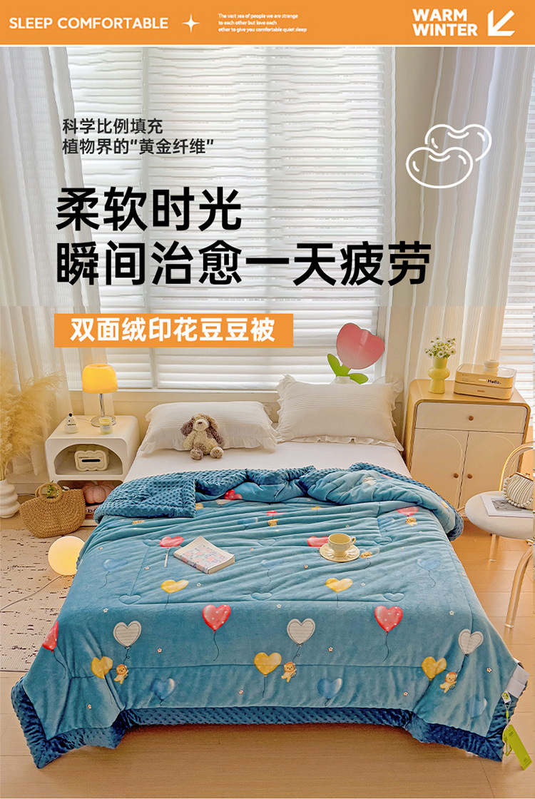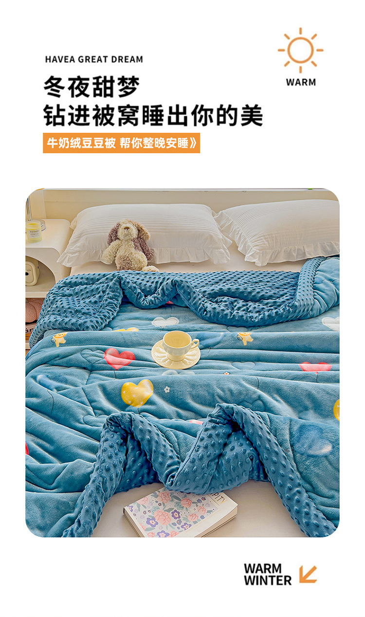 우유 벨벳 콩 이불 봄과 가을 순면 성인 콩 이불 어린이 가을과 겨울 이불 굵게 두껍게