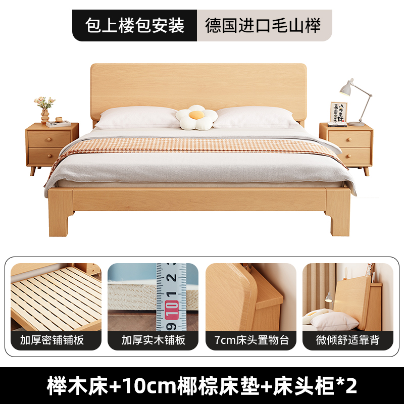 • 바니시 모델] 너도밤나무 원목 침대 + 10cm 코코넛 야자 매트리스 + 침대 옆 탁자 * 2 [위층 패키지]