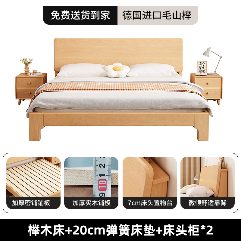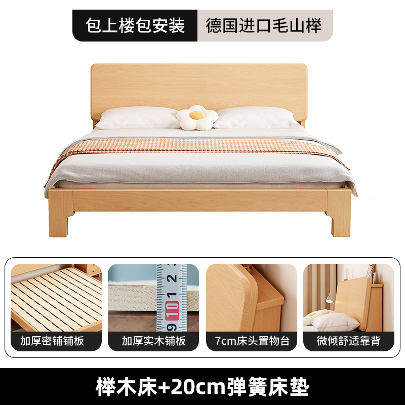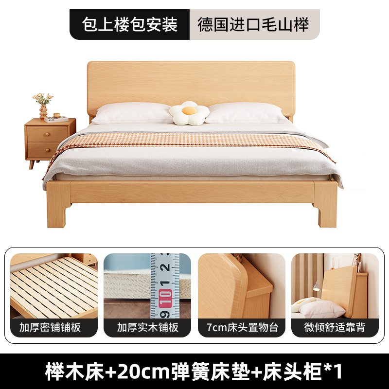 • 바니시 모델] 너도밤나무 원목 침대 + 20cm 스프링 매트리스 + 침대협탁 * 1 [위층 포함 + 설치]