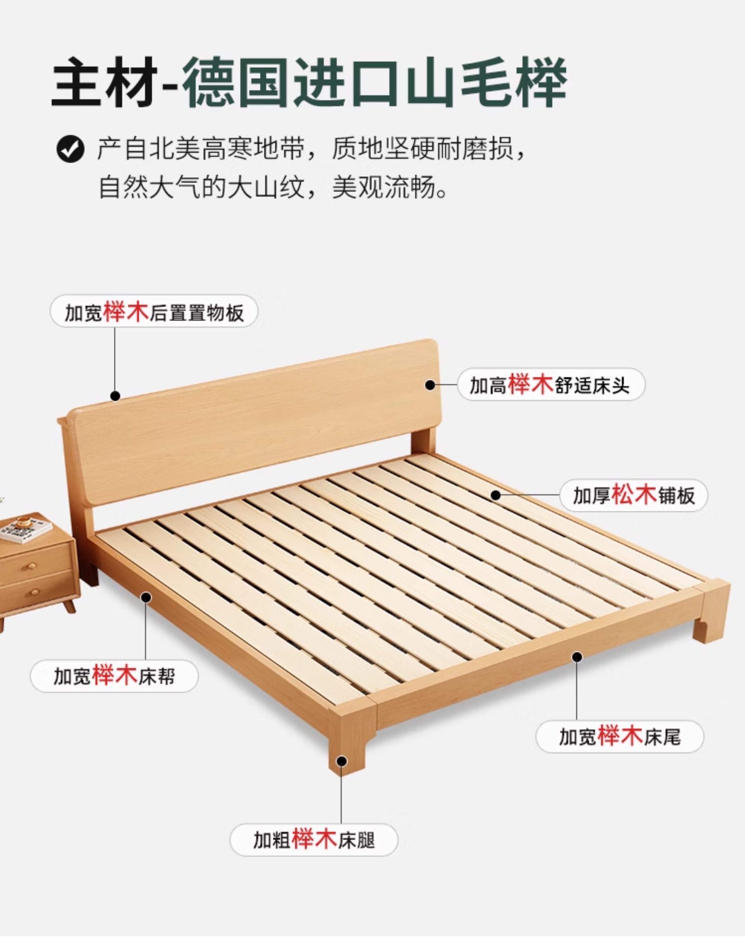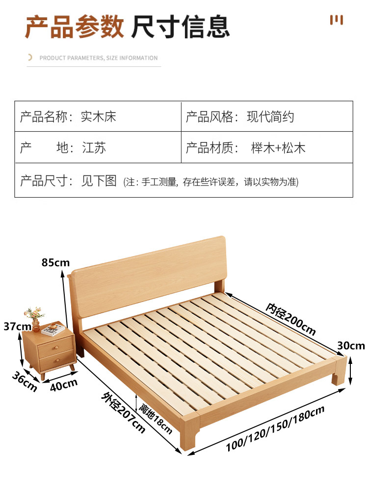 • 바니시 모델] 너도밤나무 원목 침대 + 10cm 코코넛 야자 매트리스 + 침대 옆 탁자 * 1 [위층 포함 + 설치]