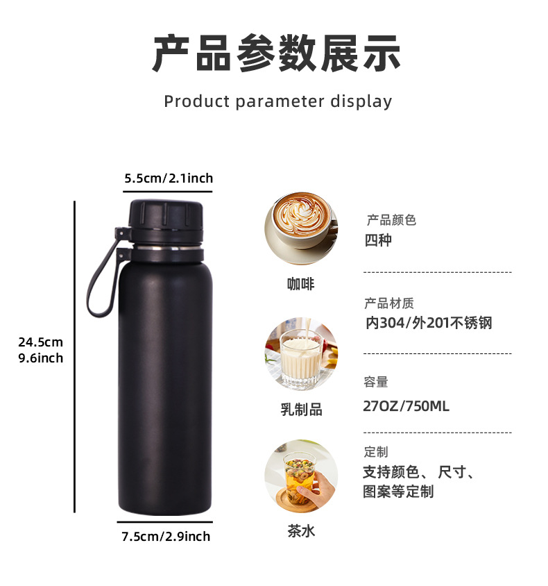 국경을 넘는 304 스테인레스 스틸 27oz 750ml 보온병 컵, 야외 등산 휴대용 컵, 스포츠 물병, 아이크 보틀 워터컵