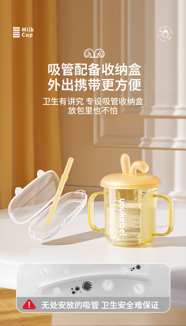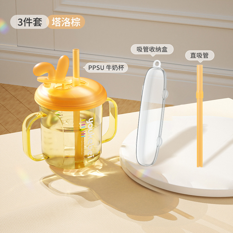 PPSU 우유 컵 어린이 바이노럴 마시는 컵 마시는 물 마시는 주스를 마시는 우유 직접 마시는 흡입 컵 단열 고온 저항스토어 가기