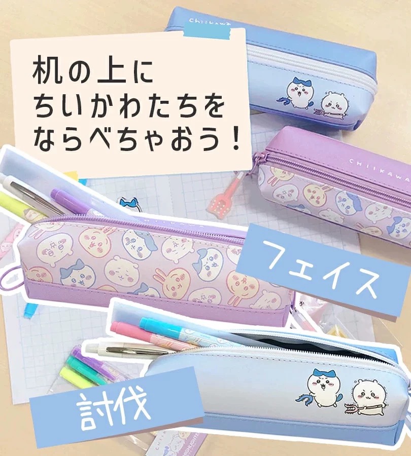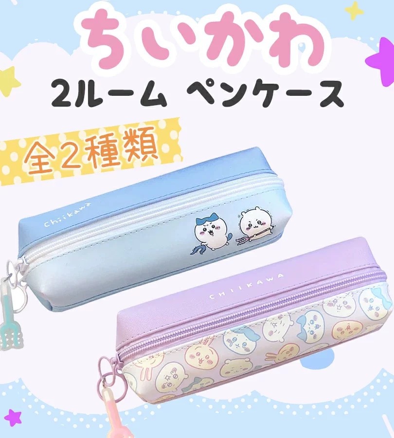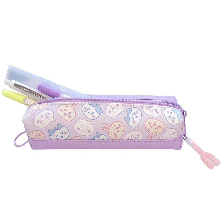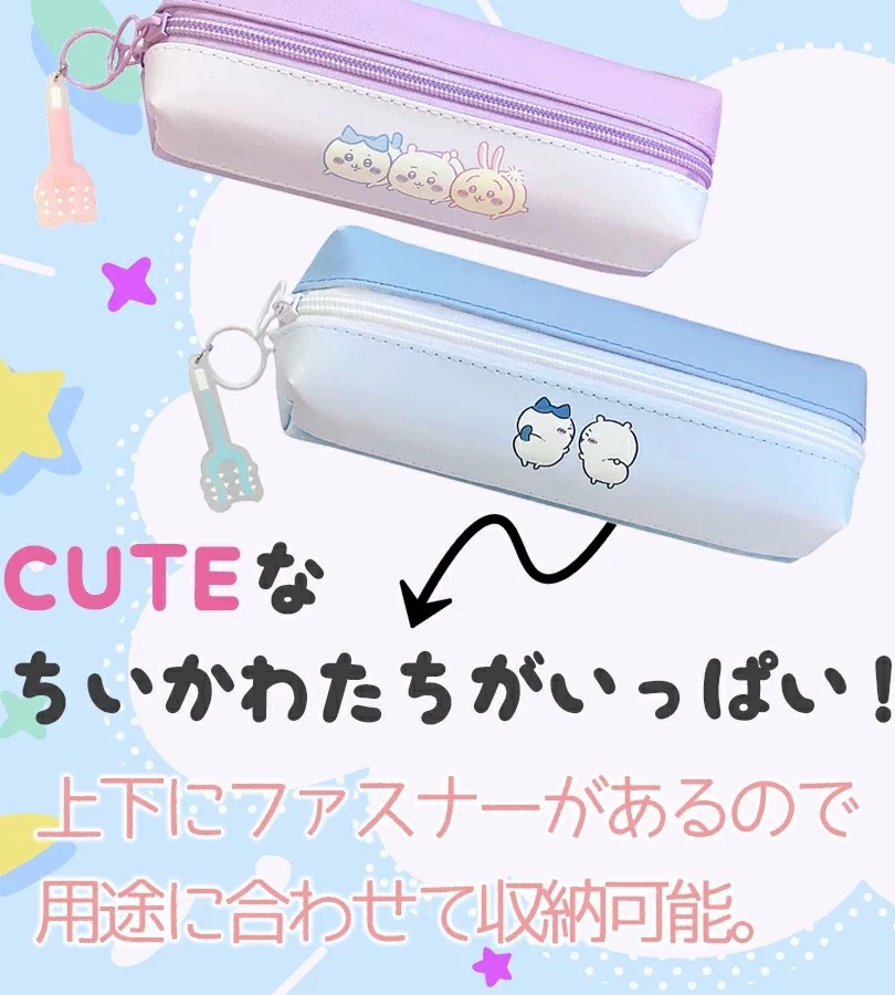일본 chiikawa Jiyika 와우 연필 케이스 만화 귀여운 양면 더블 레이어 PU 학생 연필 문구 보관 가방스토어 가기