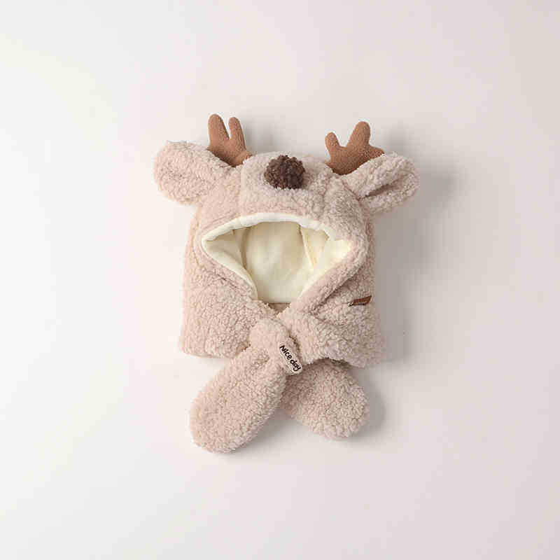 겨울 아기 모자 스카프 원피스 소년의 귀여운 앤틀러 귀 보호대 따뜻한 어린이 봉제 모자