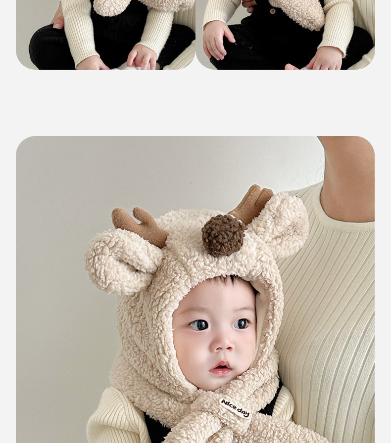 겨울 아기 모자 스카프 원피스 소년의 귀여운 앤틀러 귀 보호대 따뜻한 어린이 봉제 모자스토어 가기