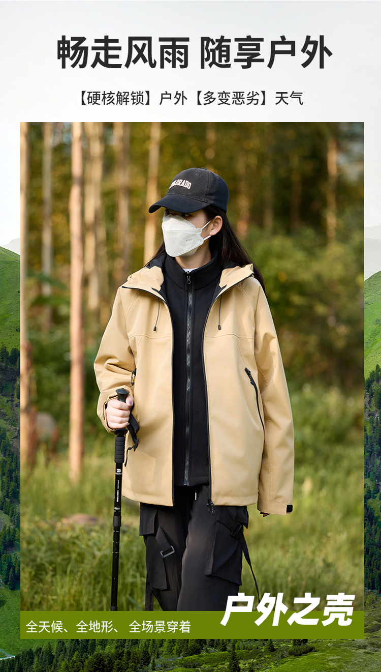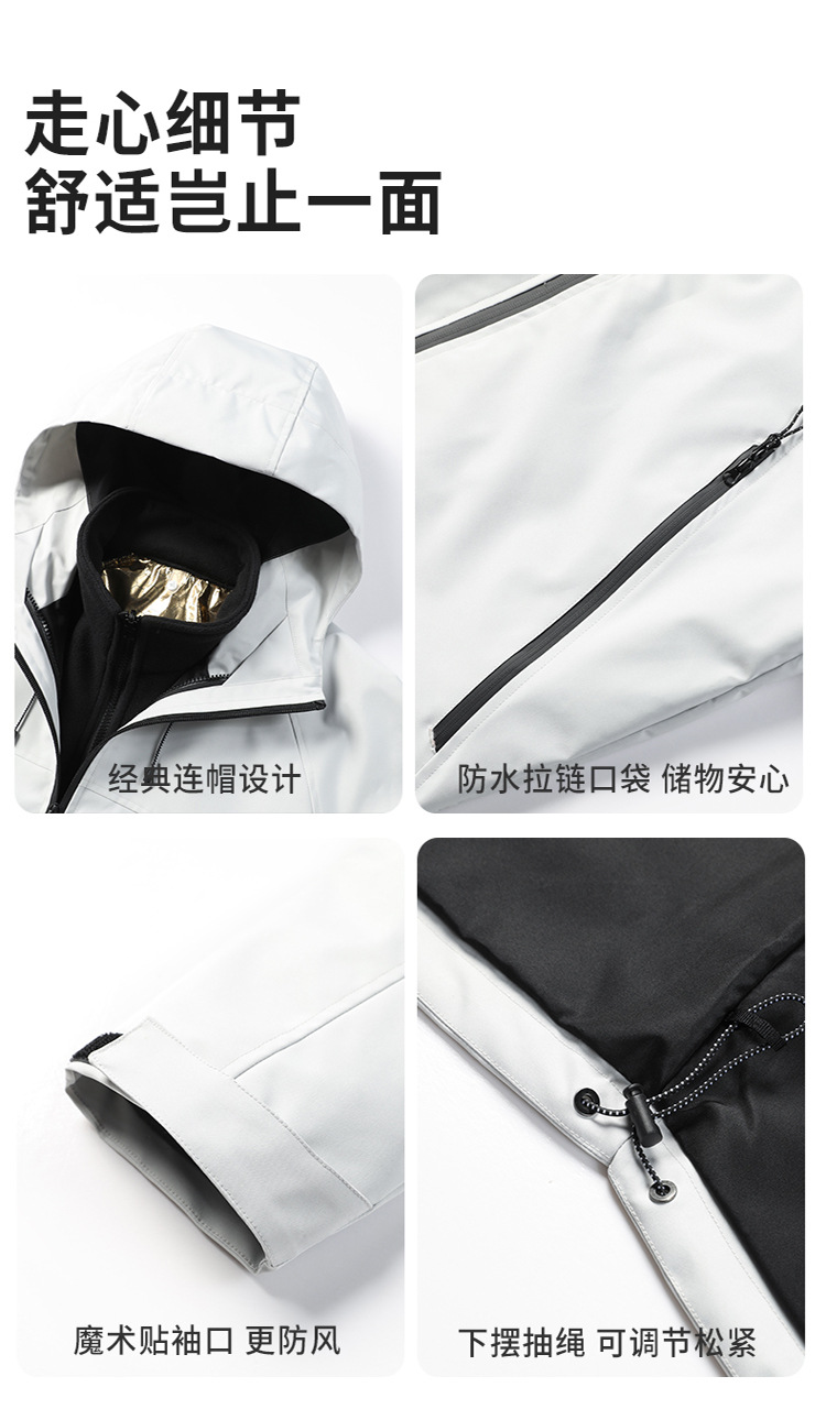 새로운 스타일 충전 의류 남성과 여성의 동일 스타일 그래 핀 3 대 1 야외 방풍 및 조수 브랜드 등산 세트 가을과 겨울 따뜻한 재킷스토어 가기