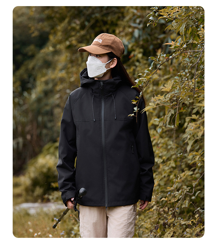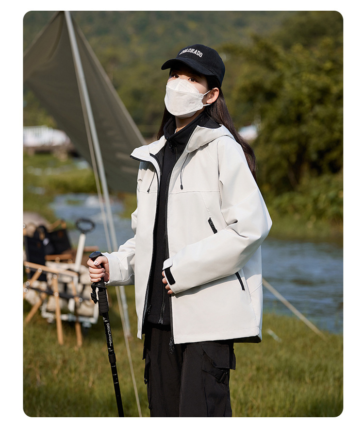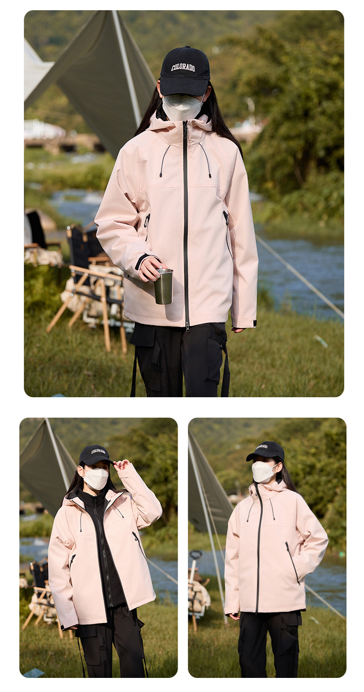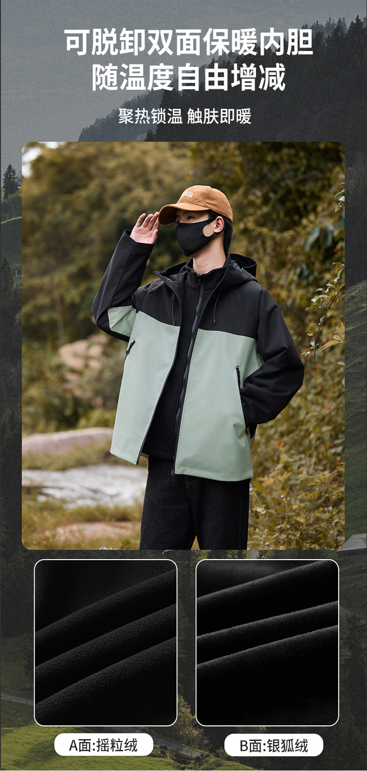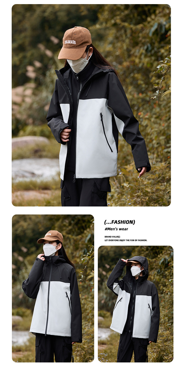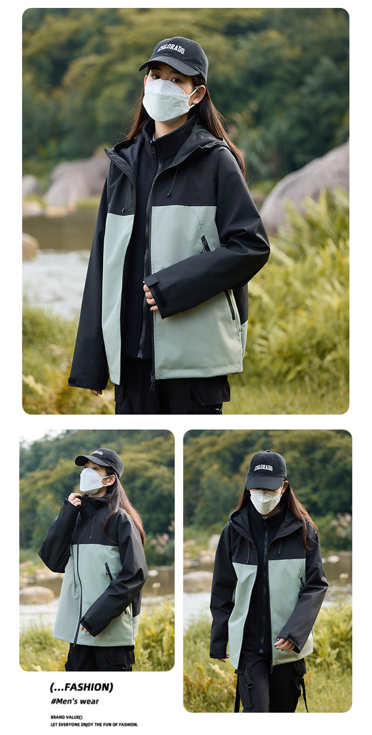 새로운 스타일 충전 의류 남성과 여성의 동일 스타일 그래 핀 3 대 1 야외 방풍 및 조수 브랜드 등산 세트 가을과 겨울 따뜻한 재킷