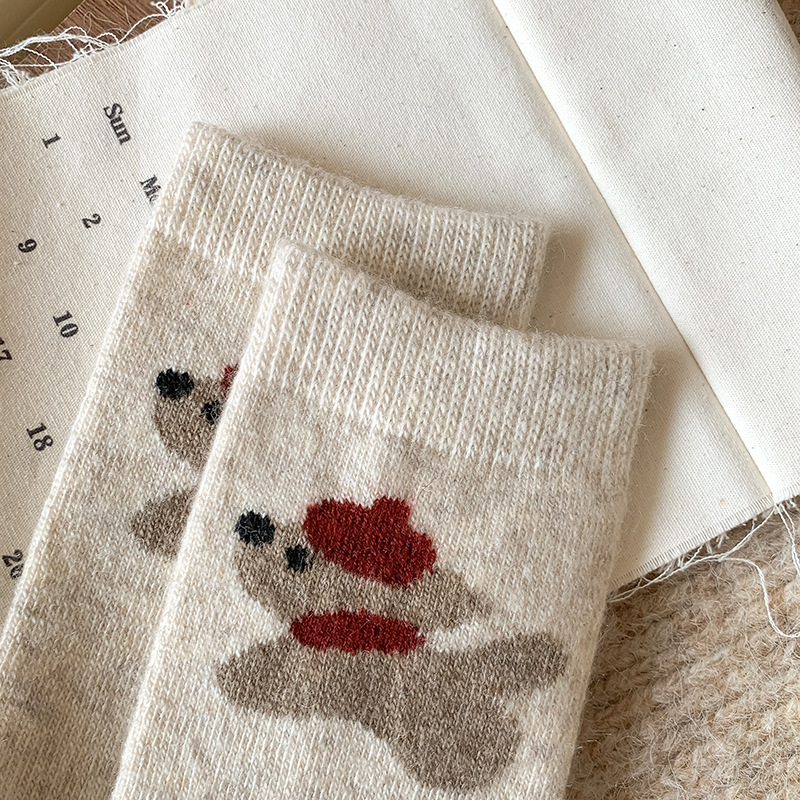 Maillard 컬러 매칭 한국 유행 유행 양말 여성 가을 및 겨울 대학 스타일 올 매치 베레 강아지 봉제 중형 양말