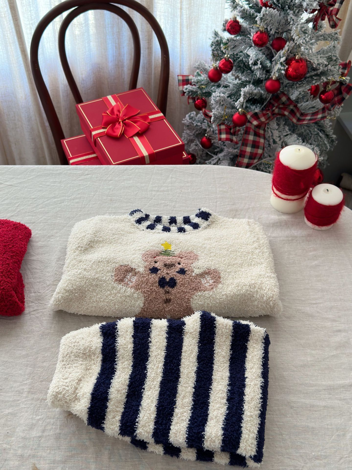 가을과 겨울 어린이 캐주얼 느슨한 반쪽 벨벳 홈 의류 세트 소년 소녀 어린이 크리스마스 베어 만화 잠옷스토어 가기