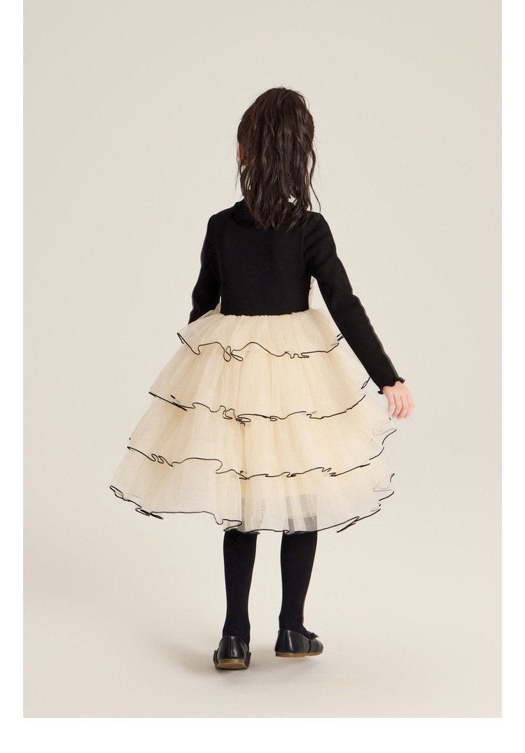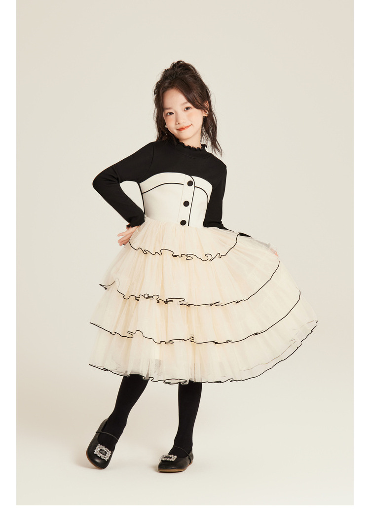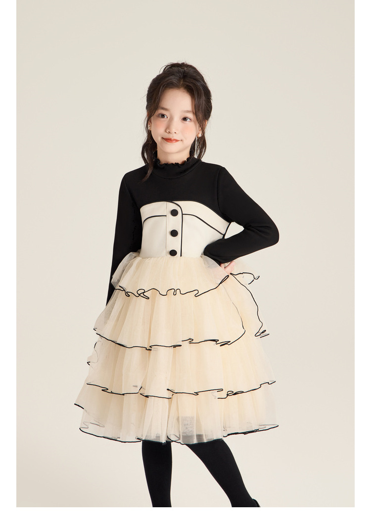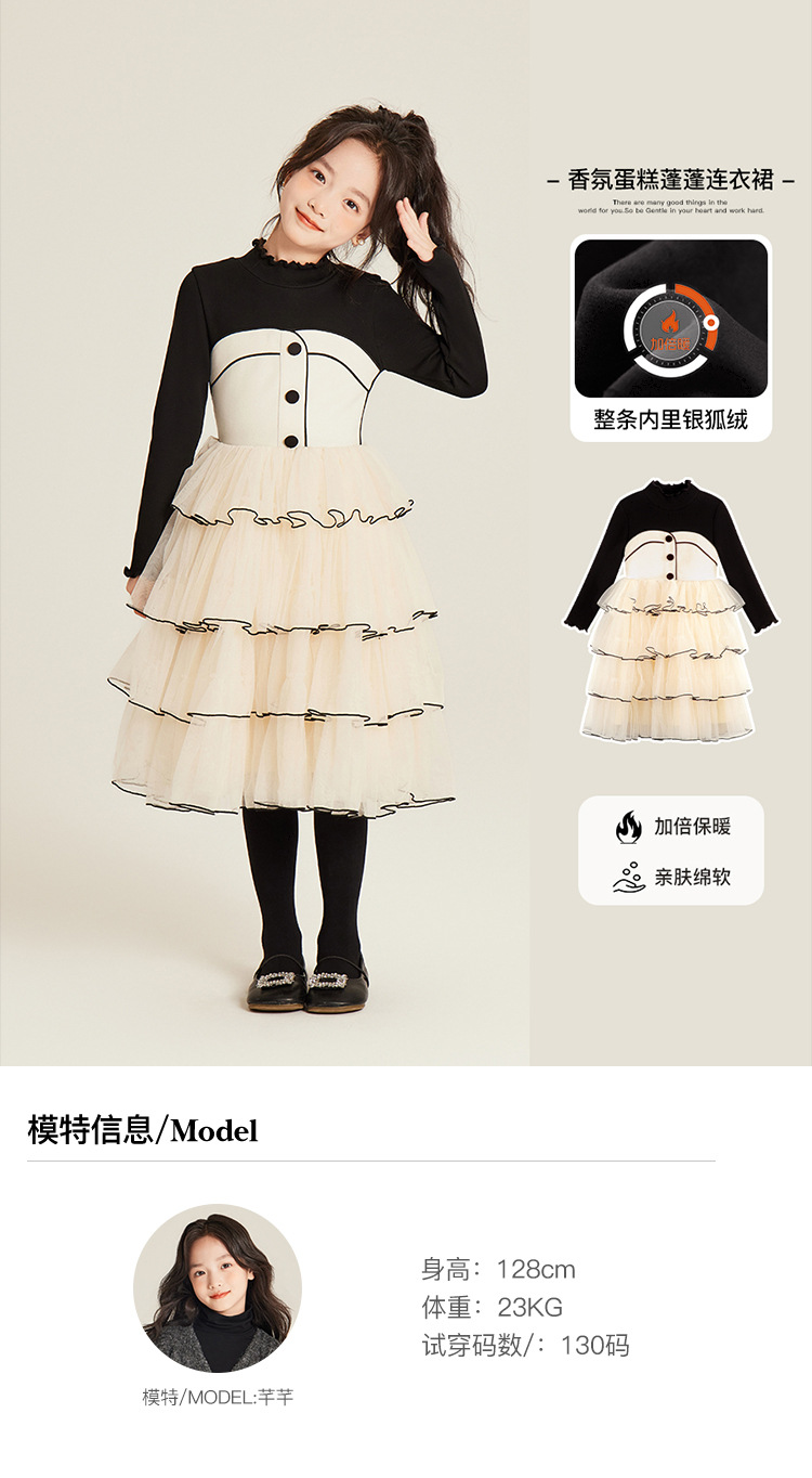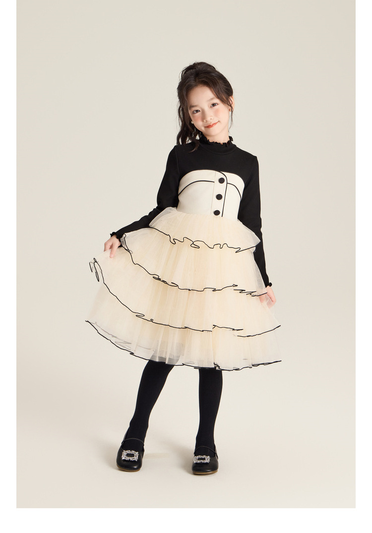 Amybaby 소녀 원피스 겨울 2024 새로운 어린이 복고풍 스티칭 메쉬 원피스스토어 가기